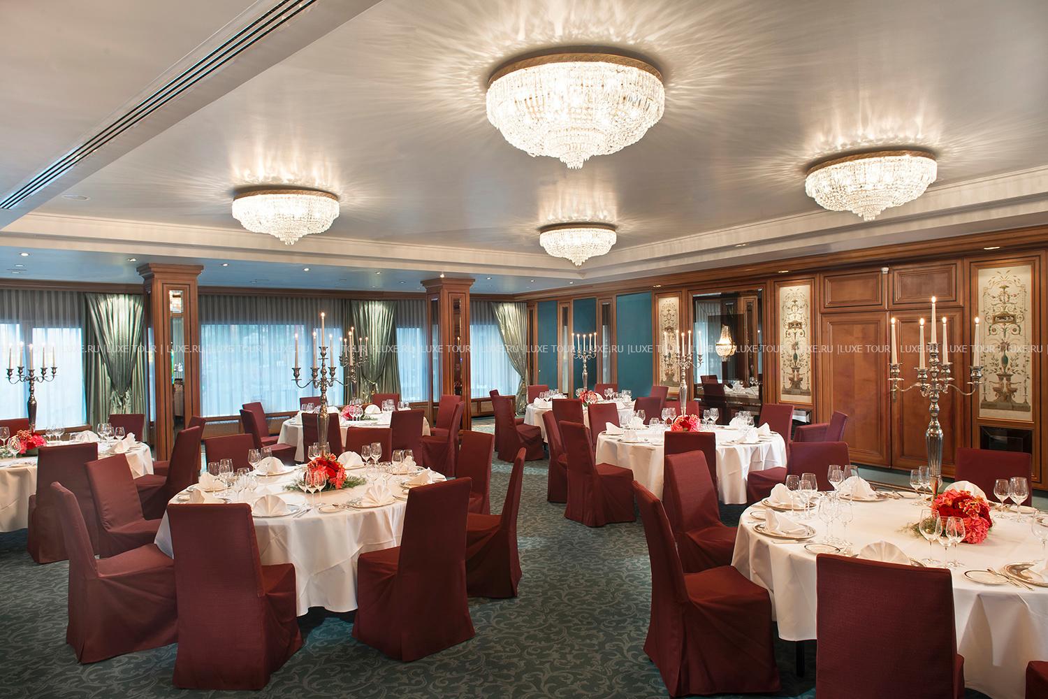 - Français – роскошный ресторан высокой кухни, награжденный звездой Michelin и 17 очками Gault Millau. Шедевры французской кухни подаются в изысканном зале, а в летнее время – на открытой террасе.