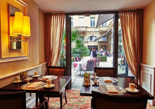 - В теплую погоду работают две живописные открытее террасы – одна во внутреннем дворе отеля, другая выходит на Кайзерплатц