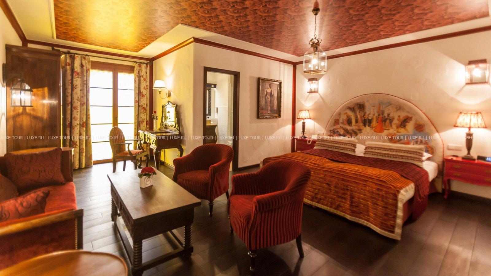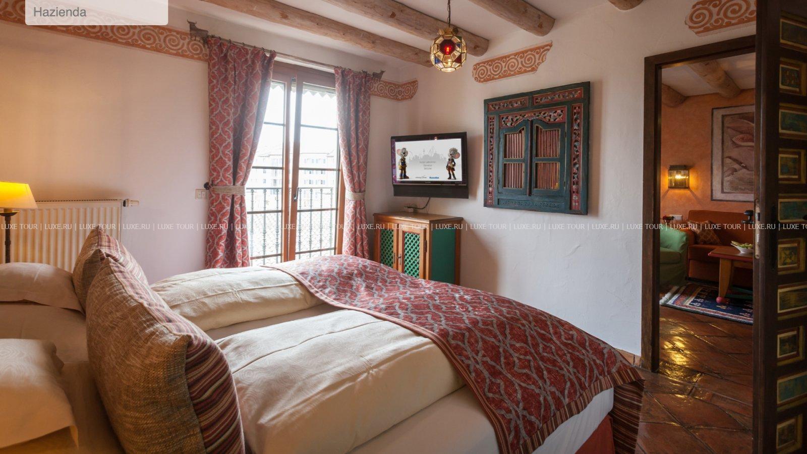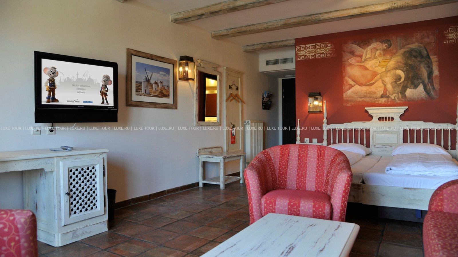 Отель El Andaluz, расположенный в самом сердце развлекательного парка Европа, приглашает гостей насладиться атмосферой средиземноморского праздника и испанской сиесты. Построенное в элегантном андалузском стиле здание отеля словно бы открывает перед гостями мир крошечной Испании: уютный внутренний дворик с изящными портиками, мавританским фонтаном, эффектными статуями, испанской мозаичной плиткой, терракотовыми полами и балкончиками, выходящими на открытый бассейн, – чудесным образом перекликается со сдержанной элегантностью белоснежного фасада, приглашающего заглянуть в этот отель. Помимо исключительного внешнего образа, великолепного тропического сада, нескольких ресторанов и баров, предлагающих блюда испанской и международной кухни, El Andaluz также очаровывает пышным оформлением своих номеров, каждый из которых прекрасен своим продуманным индивидуальным убранством: яркая палитра красок, изящная мебель, оригинальные светильники, пышные ковры, богатые цветочные композиции и картины – представляют южную Испанию во всей ее красе.
