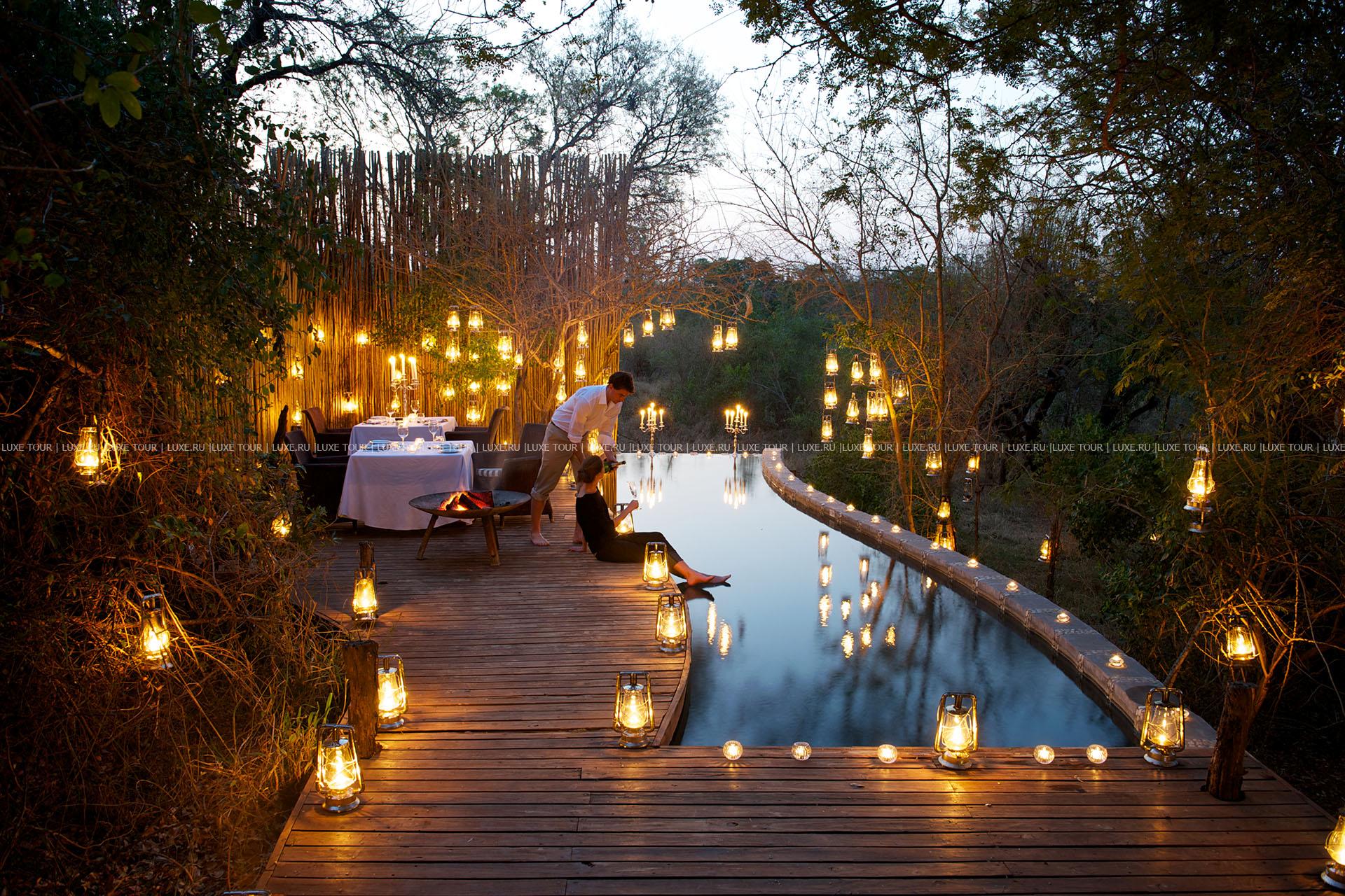 Бассейны есть в каждом лагере и в лодже. Увлекательные дневные и ночные сафари, прогулки по африканскому бушу с гидом, романтические пикники при свете звезд, наблюдения за животными и птицами. Организуются и автомобильные прогулки.