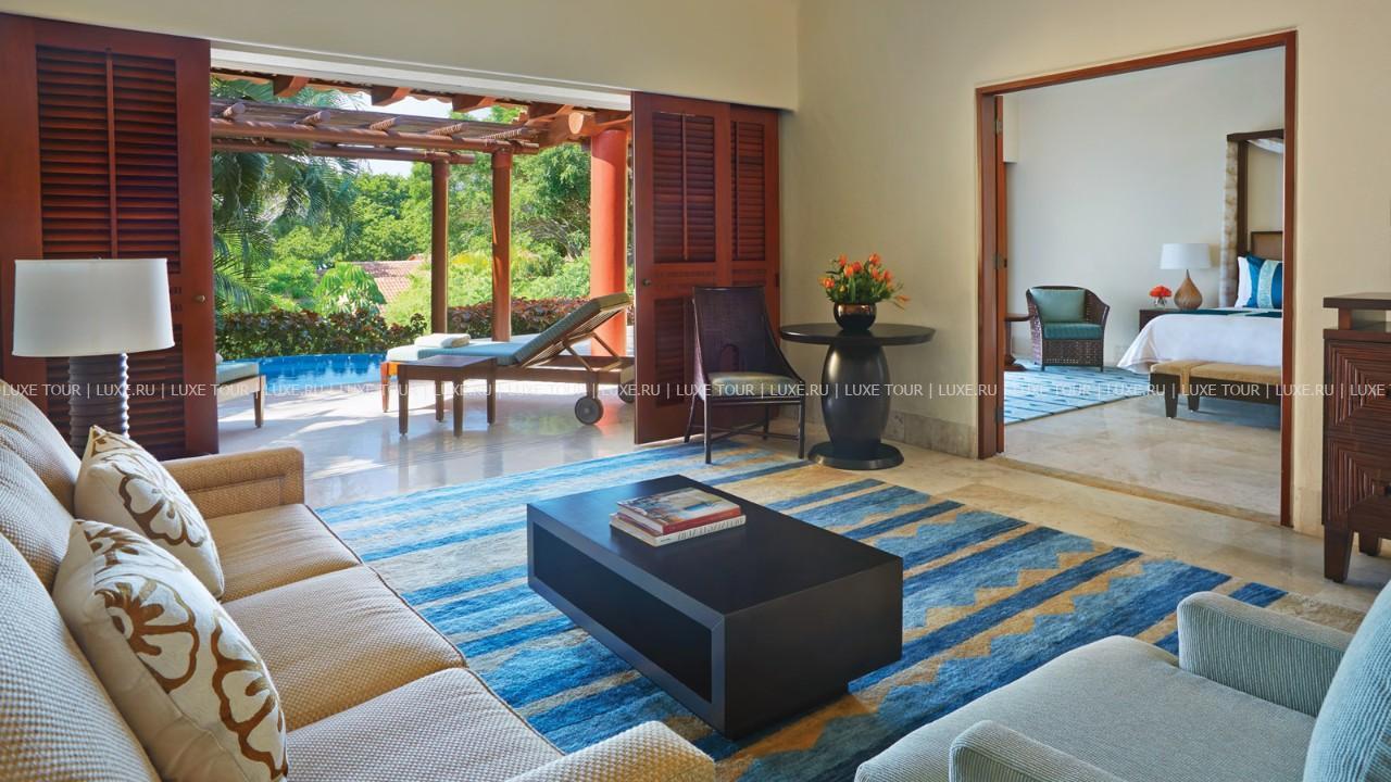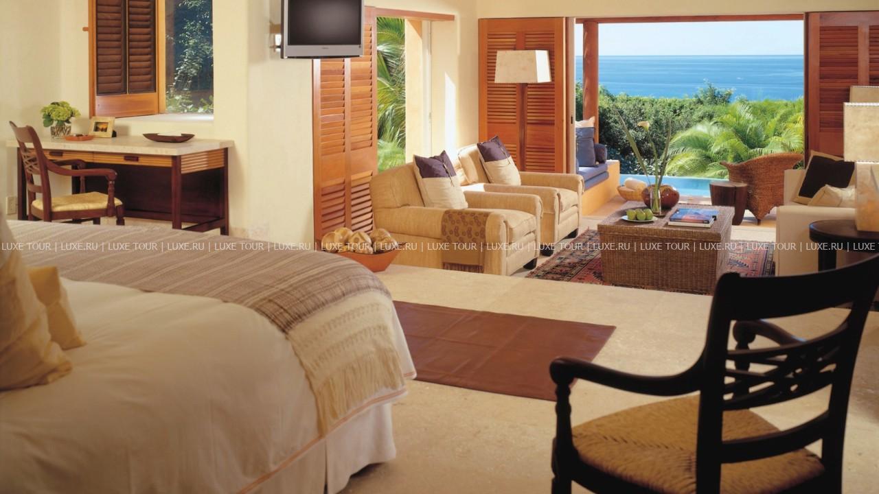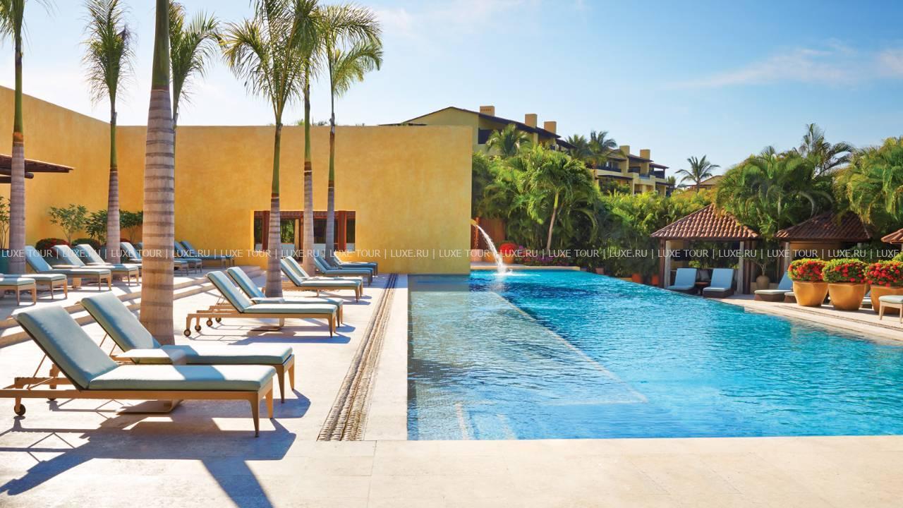 Роскошный курорт Four Seasons Resort Punta Mita расположен на самом берегу океана, в бухте Бандераса и представляет собой комплекс из традиционных бунгало-каситас. Все элегантные и комфортабельные номера построены и декорированы в стиле, сочетающем современный минимализм и яркий мексиканский стиль. Великолепный Spa-центр отеля использует уникальные методики омоложения и оздоровления с использованием местных растений, целебные свойства которых известны еще со времен древних ацтеков. Гольф-поле, построенное по проекту знаменитого Джека Никлауса, расположено на берегу океана.