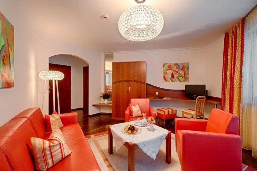 - Отель располагает комфортабельными номерами различных категорий, включая Single Room, Double Room, Junior Suite, Luxury Suite, Suite. Номера оформлены в элегантном классическом стиле, сочетающем современный дизайн и альпийский уют. Кроме этого, отделка и мебель во многих номерах выполнены из редкой породы швейцарской сосны, которая обладает целебными свойствами. С балконов номеров открывается великолепный вид на горные ландшафты Каринтии. Гостям апартаментов предоставляется доступ в СПА комплекс отеля.