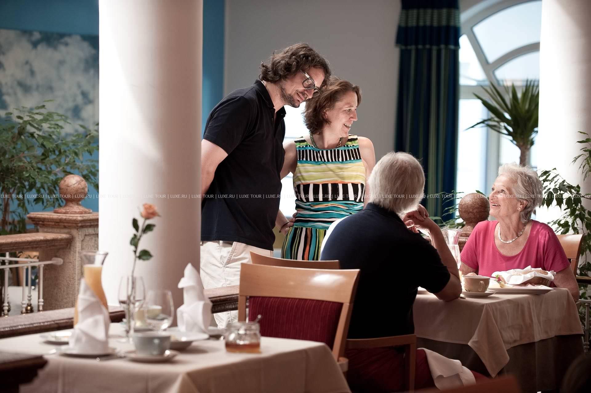 В ресторане отеля предлагается широкий выбор блюд тирольской, австрийской и региональной кухни, приготовленных из лучших местных продуктов, а также превосходные вина из собственного винного погреба отеля. По утрам сервируют вкусный завтрак «шведский стол» в фермерском стиле.