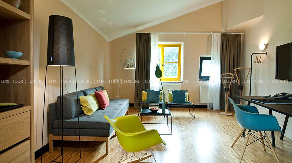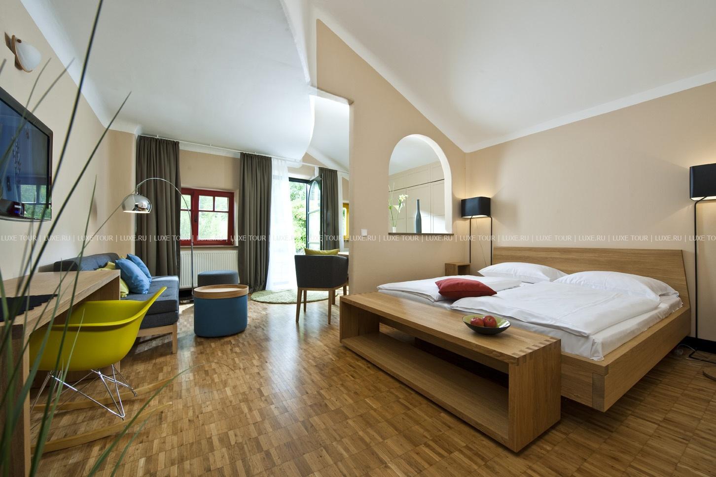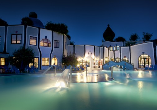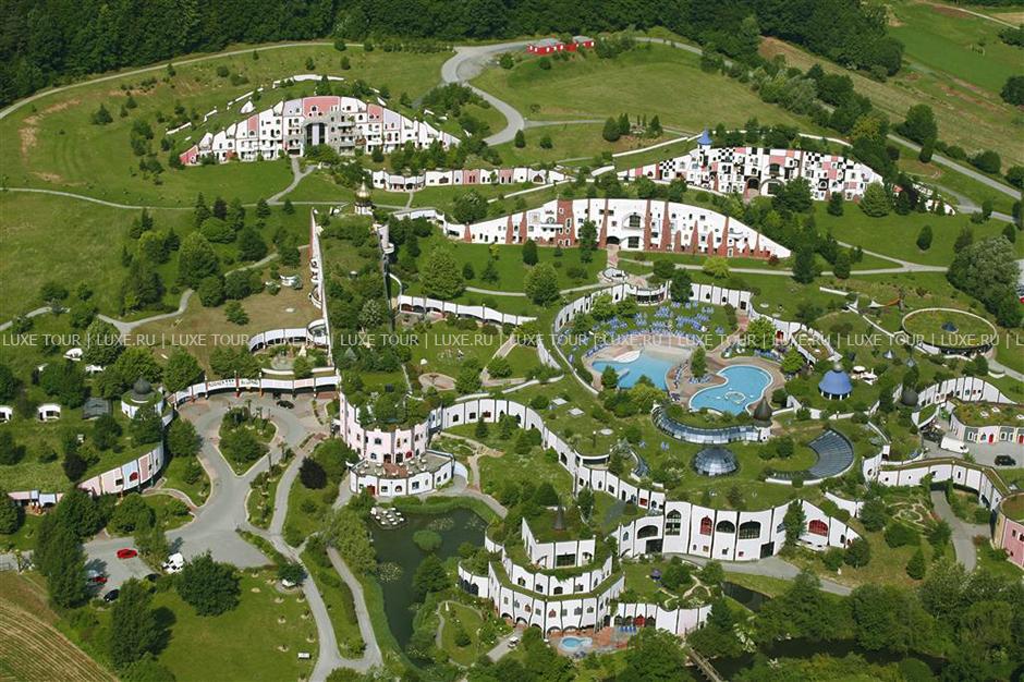 Среди пышных лесов, живописных холмов и зеленых лугов солнечной Штирии, на термальном курорте Бад Блюмау, расположился уникальный Rogner-Bad Blumau, похожий на сказочный город: стены необычной формы, разноцветные яркие фасады, затейливые башенки и купола, трава и деревья, растущие на прямо крышах, причудливые балкончики и окна. Созданный архитектором, экологом и художником Friedensreich Hundertwasser, отель удивительным образом сочетает фантастический дизайн с уютным современным комфортом и многообразием услуг. Во всех номерах - стильные интерьеры в светлых тонах, с оригинальным дизайном, отделкой, полами и мебелью из светлого дерева, элегантным современным декором. Отель располагает уникальным Оздоровительным/СПА Центром площадью 8.500 м2, с водным пространством площадью 2.724 м2. СПА Центр включает фитнес-студию и процедурные кабинеты, предлагающие широкий спектр услуг по уходу за здоровьем и внешностью, также проводятся консультации терапевта и диетолога, работает салон красоты.