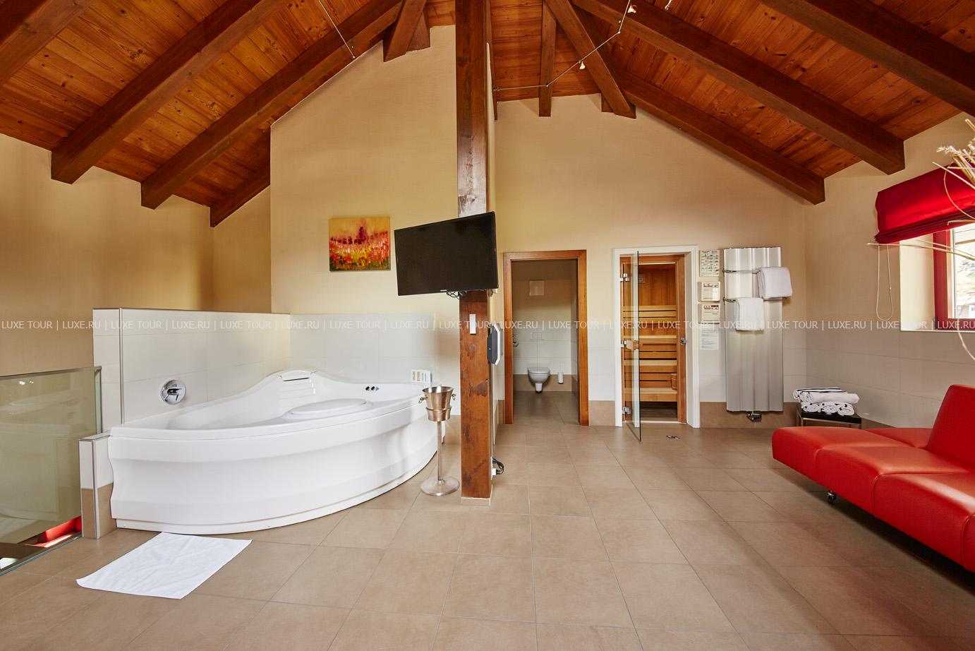 В уютном лаундж-баре можно отдохнуть за аперитивом или бокалом изысканного вина из собственного винного погреба отеля.