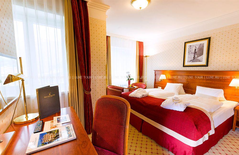 Элегантный, с нарядными золотисто-желтыми стенами, особняк Salzburger Hof, построенный в 1907 году, возвышается в центре курорта Bad Gastein, среди пышной зелени старинного парка и величественных альпийских склонов. В комфортабельных номерах отеля - изысканные интерьеры в теплых тонах, с преобладанием насыщенных красных оттенков, с отделкой из дорогого текстиля, изящной мебелью, тщательно подобранными элементами декора, из номеров открывается чудесный вид на парк и горные ландшафты. В Salzburger Hof открыт СПА Центр, включающий крытый бассейн, открытую и крытую джакузи, сауны, парную, термальные ванны, процедурные кабинеты, предлагающие большой выбор различных видов массажа и СПА процедур. Расположение отеля обеспечивает большой выбор зимних и летних видов спорта, недалеко расположено гольф-поле на 18 лунок, также предлагаются различные экскурсионные и развлекательные программы. В элегантном ресторане Ritz предлагаются изысканные блюда интернациональной кухни в сопровождении богатой карты вин из собственного винного погреба отеля, а в баре Ritz вечерами звучит живая фортепианная музыка. В уютном баре Pilsstube подаются après-ski ланч, различные напитки и играет традиционная австрийская музыка.