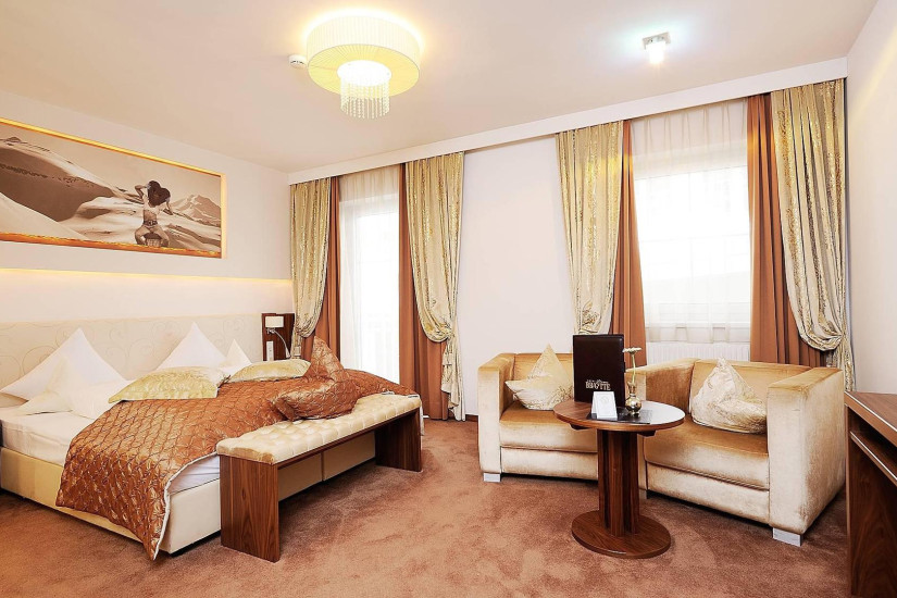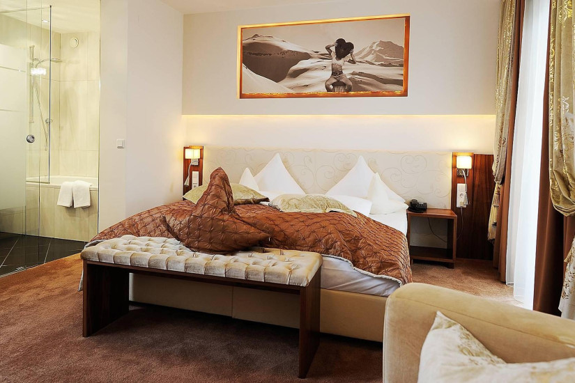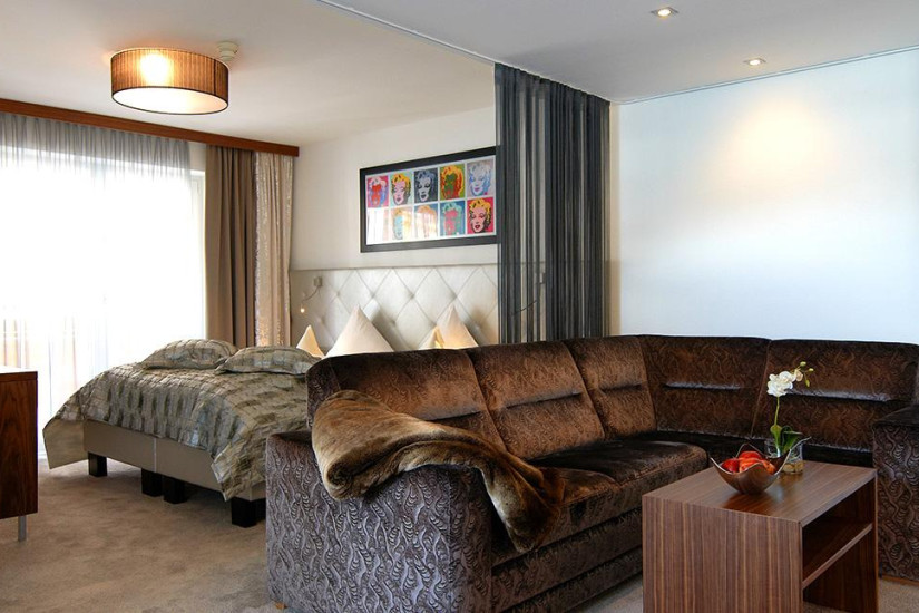 - 30 м2. Состоит из спальни с зоной отдыха и рабочей зоной, ванной комнаты с ванной и отдельным душем, балкона с видом на Ишгль.