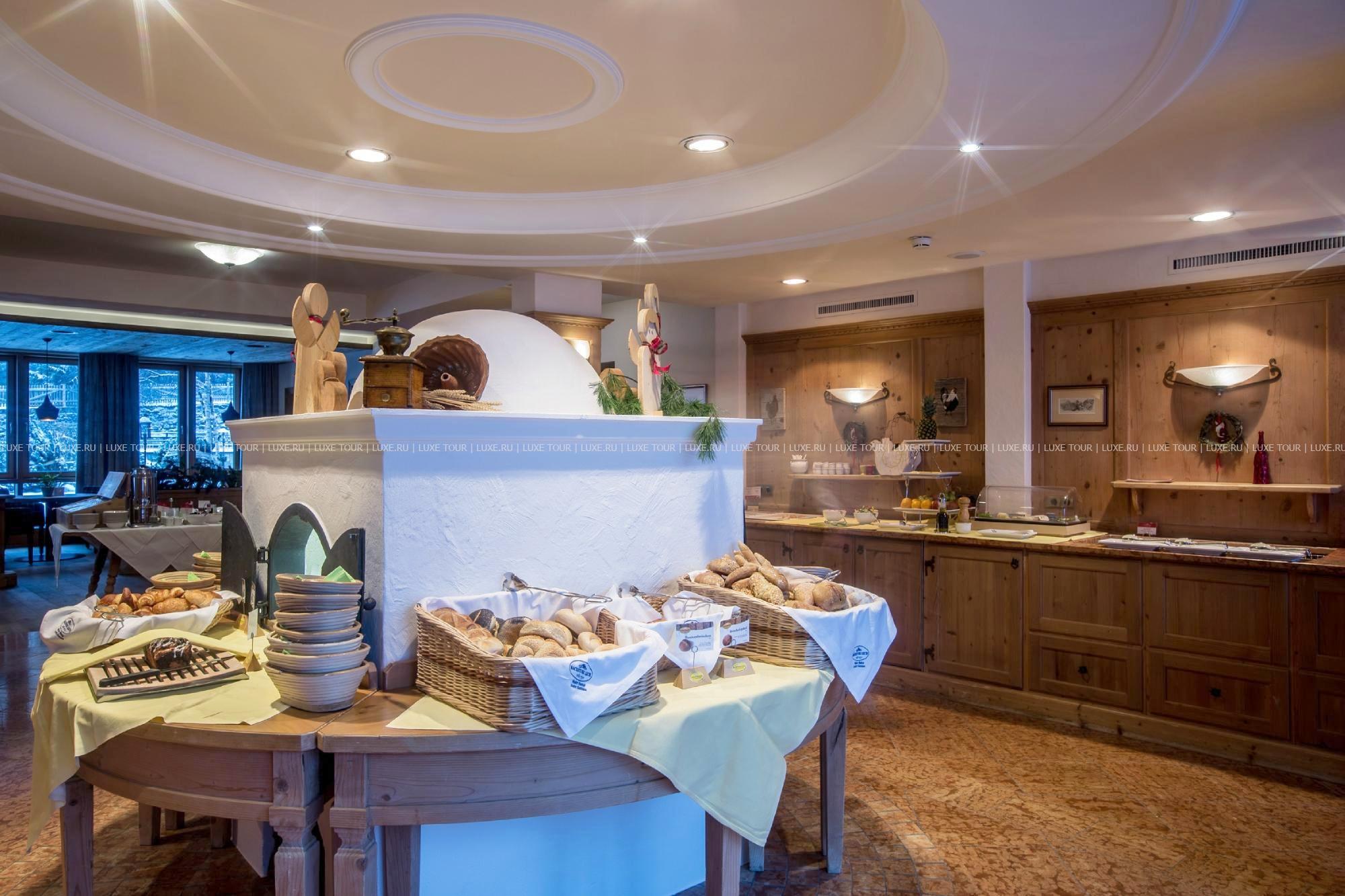 В ресторане отеля — изысканное меню блюд австрийской и международной кухонь, кафе предлагает большой выбор аппетитной выпечки из собственной пекарни отеля, ароматный кофе и легкие закуски, которые можно отведать и на открытой террасе.