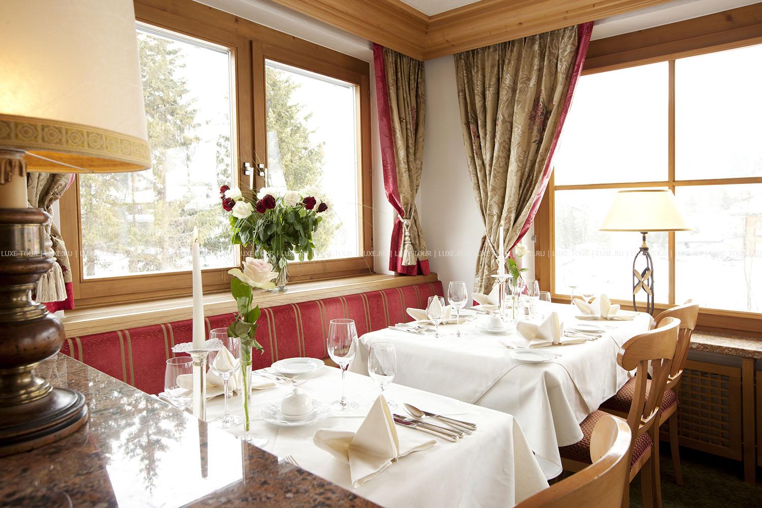 В ресторане отеля предлагаются блюда местной и международной кухонь, а в уютном баре с камином — разнообразие напитков. Также в хорошую погоду работает открытая терраса.