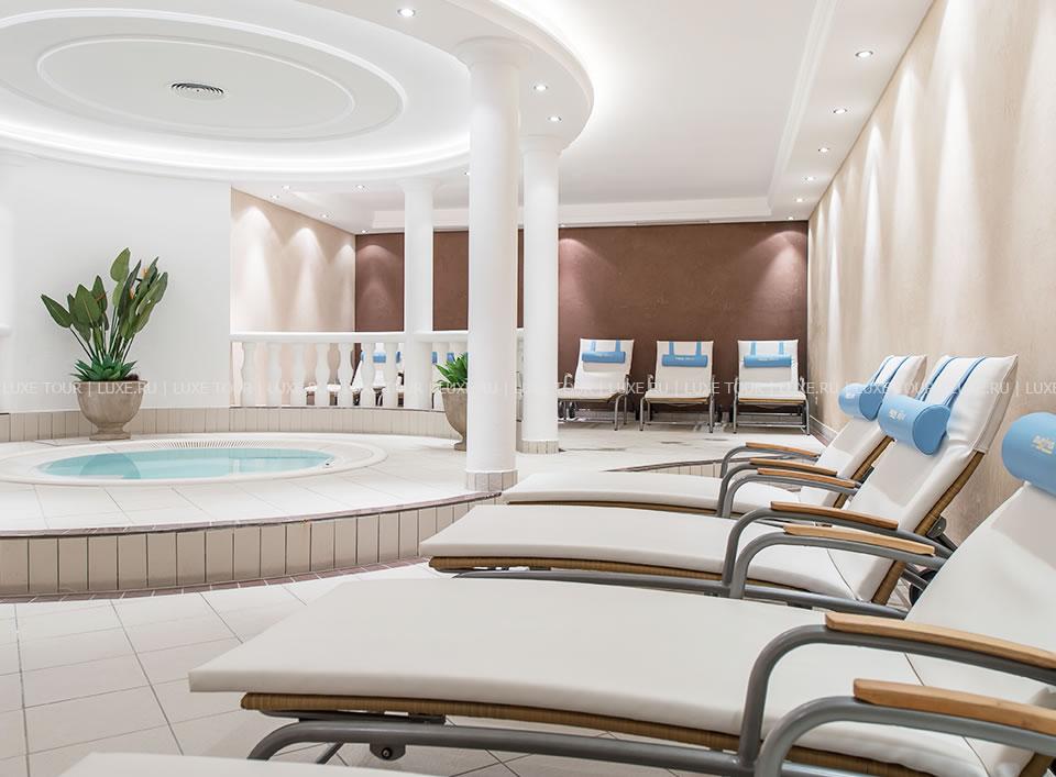 Отель располагает прекрасно оборудованным Оздоровительным/СПА центром, включающим: подогреваемый открытый бассейн и крытый панорамный бассейн “Aquamarin”, джакузи, сауну, био-сауну, хаммам, бассейн с соленой водой, зону отдыха с водяными кроватями, фитнес-зал, а также массажный кабинет.