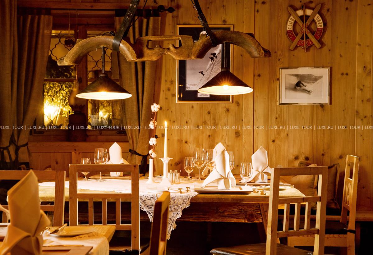 В элегантном ресторане предлагается разнообразие блюд тирольской кухни в сопровождении вин из собственного винного погреба отеля. Также открыто небольшое кафе, а уютный бар с камином приятное место отдыха.