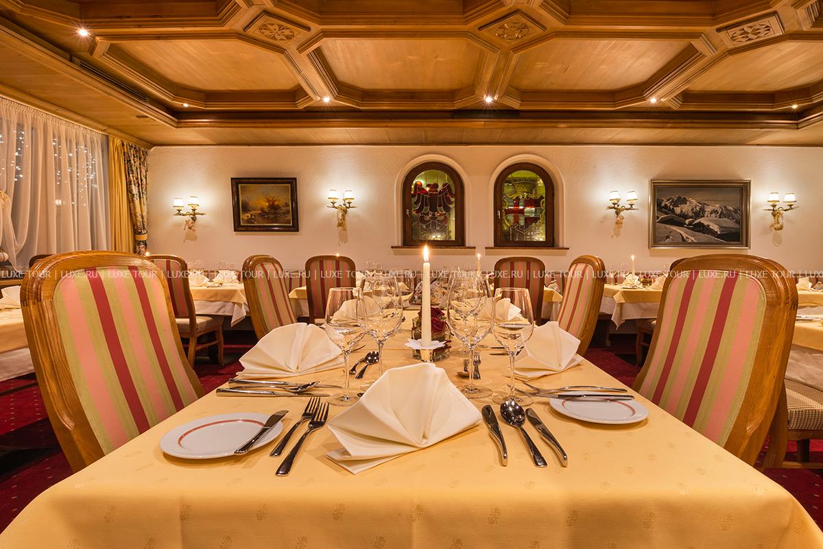 В ресторане отеля подаются разнообразные блюда традиционной тирольской кухни, в элегантном баре — уютная обстановка и напитки на любой вкус.