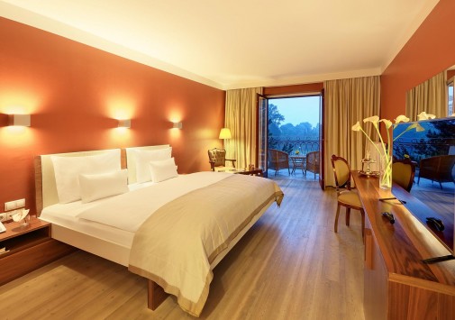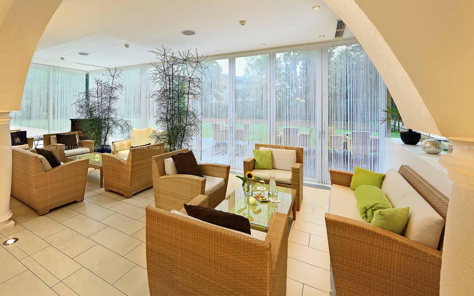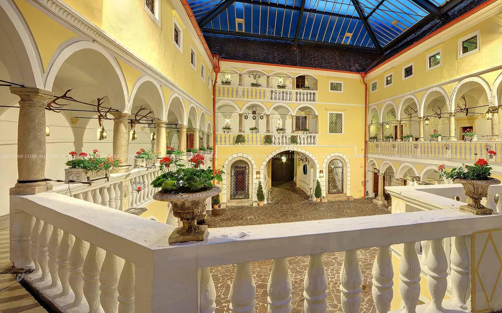 В центре Бадена, рядом с живописным парком Doblhoffpark, в окружении одного из крупнейших розариев Европы, насчитывающего более 600 сортов роз, расположился старинный Schloss Weikersdorf, первое упоминание о котором относится к 1233 году. Нарядное здание, построенное в стиле Ренессанса, отличается изяществом архитектуры и отделки: арочная галерея, искусная лепнина, балюстрада, украшенная цветами, уютный внутренний двор под прозрачным атриумом. В комфортабельных номерах - элегантные интерьеры, сочетающие изысканность классического стиля и элементы современного дизайна: теплые тона, изящная мебель, полы из натурального дерева, тщательно подобранные элементы декора. Отель располагает Оздоровительным/СПА Центром, занимающим 1000 м2 и включающим: крытый бассейн, финскую сауну, био-сауну, парную, ледяной фонтан, зал гидротерапии по методу Kneipp, комнаты тишины, зону отдыха со СПА баром, тренажерный зал, солярий, а также процедурные кабинеты, предлагающие широкий спектр процедур и программ по уходу за здоровьем и внешностью с использованием натуральных продуктов, например, винограда, лепестков роз или вина.