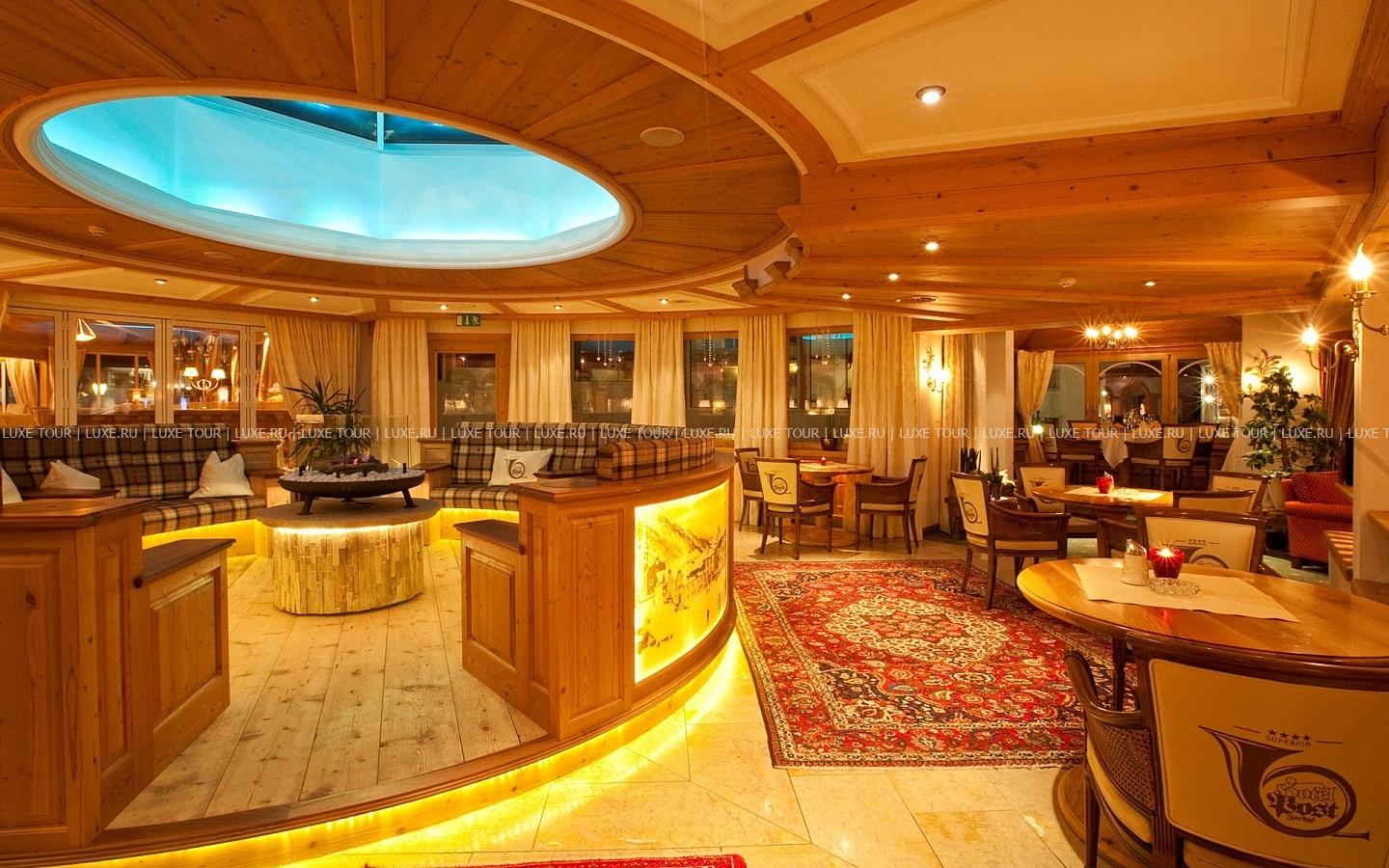 Расположенный в центре горнолыжного курорта Ischgl, рядом с тремя основными подъемниками, ведущими к многочисленным лыжным спускам, среди живописных гор и альпийских лугов, Post представляет многообразие услуг, гостеприимную атмосферу и приверженность старинным традициям: в комфортабельных номерах отеля — элегантные интерьеры в тирольском стиле, выдержанные в теплых тонах, с отделкой из дерева, удобной мебелью, мягким освещением, красивыми драпировками. Отель располагает СПА Центром, занимающим площадь в 1000 м2 и включающим: крытый бассейн с водопадами, джакузи, различные виды саун, а также лечебных и расслабляющих ванн, разнообразные виды душа, солярий, террасы для принятия солнечных ванн, тренажерный зал, комнату отдыха, а в Центре красоты гостям предлагается большой выбор процедур и программ по уходу за здоровьем и внешностью.