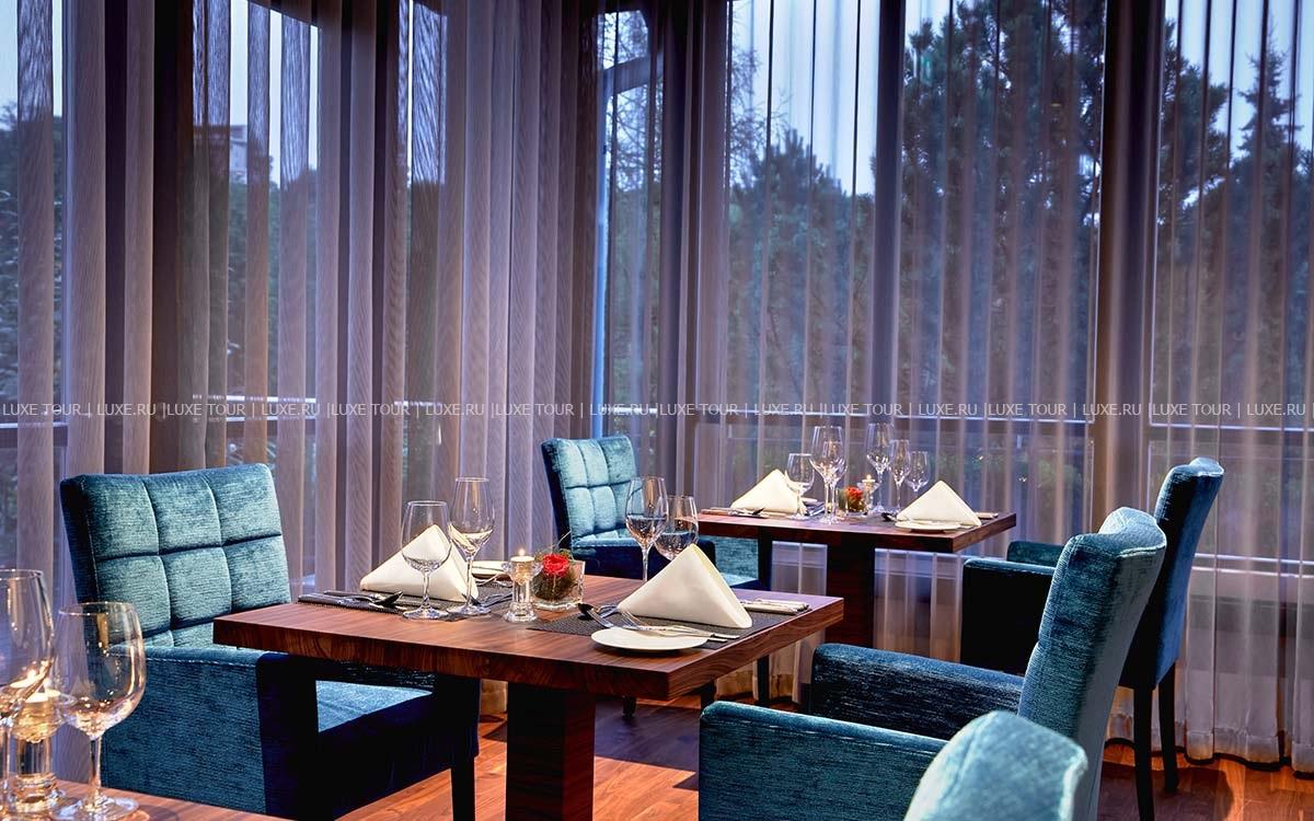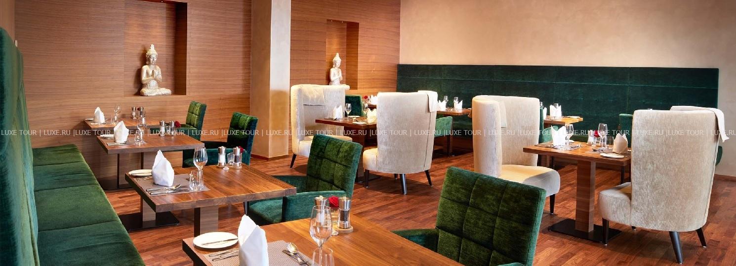 - Элегантный ресторан отеля, разделенный на несколько зон, представляет сочетание региональной кухни, принципов аюрведического питания и отборных местных продуктов.
