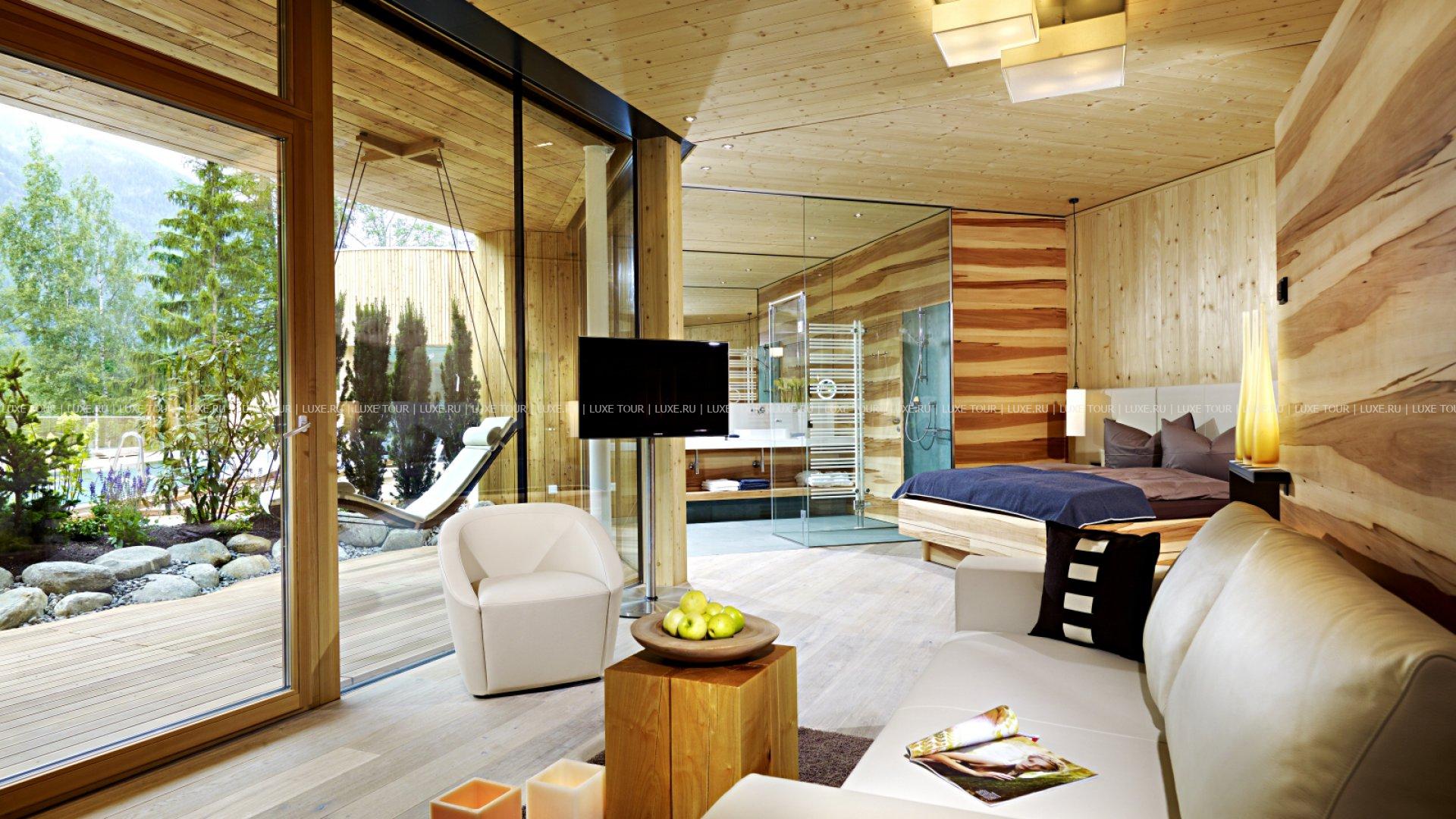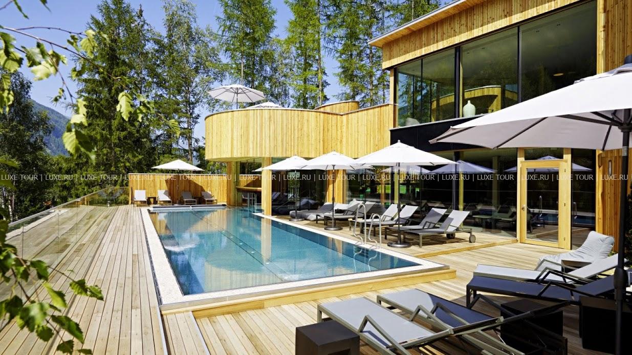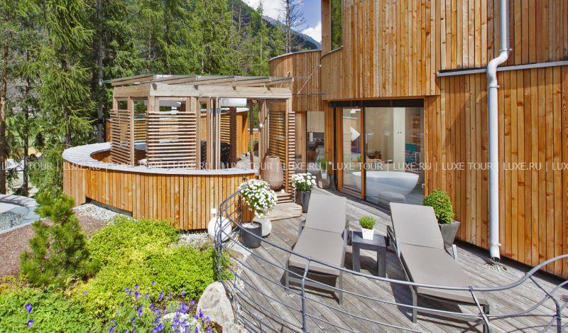 Изящное здание необычной архитектуры Naturhotel Waldklause, построенное из камня, дерева и стекла и отражающее модные тенденции современного дизайна, расположено среди пышного леса, величественных горных склонов и живописной долины Эцталь (Ötztal). В просторных комфортабельных номерах - стильные современные интерьеры, с отделкой из натурального светлого дерева, необычным освещением, удобной дизайнерской мебелью, оригинальными элементами декора, с уютных балконов открывается чудесный вид на окружающие ландшафты. В отеле открыт Оздоровительный/СПА Центр с сауной, био-сауной, парной, СПА ванными, тренажерным залом, солярием, 3 просторными панорамными террасами для принятия солнечных ванн, зоной отдыха, массажными кабинетами, салоном красоты, где предлагается большой выбор услуг с применением косметики DECLÉOR и Kraft der Alpen.