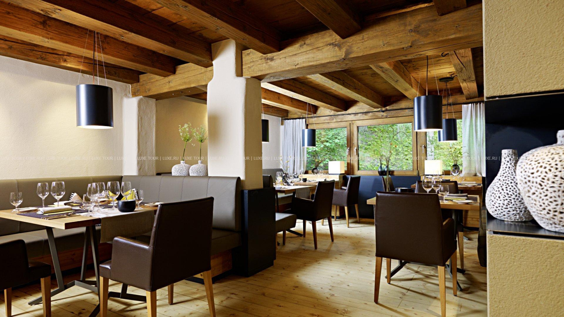 В ресторане отеля предлагается разнообразие блюд тирольской и интернациональной кухонь, представленное в меню (из 5 основных блюд) и на шведском столе, еженедельно устраиваются тематические ужины.