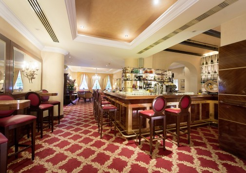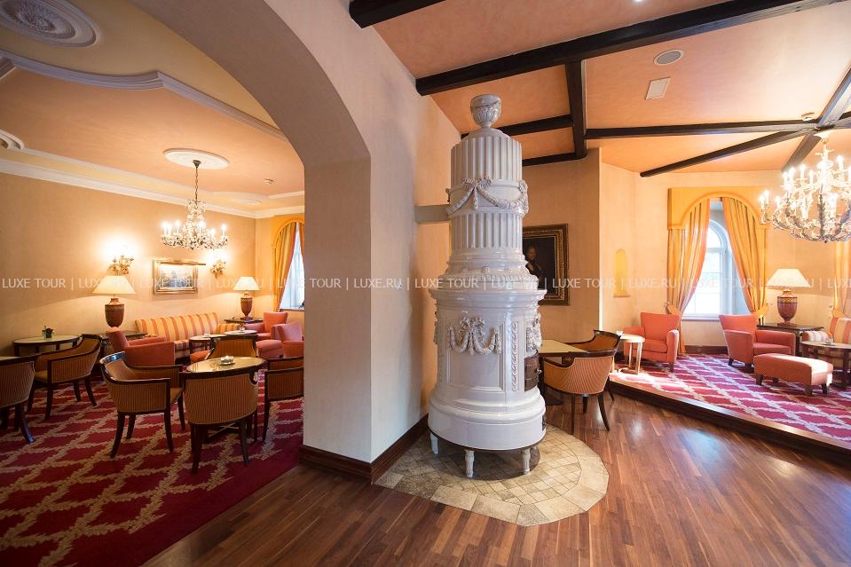 Уютный Schlossbar с открытой террасой — приятное место для отдыха, где вечерами звучит живая фортепианная музыка.