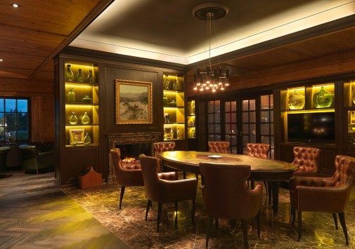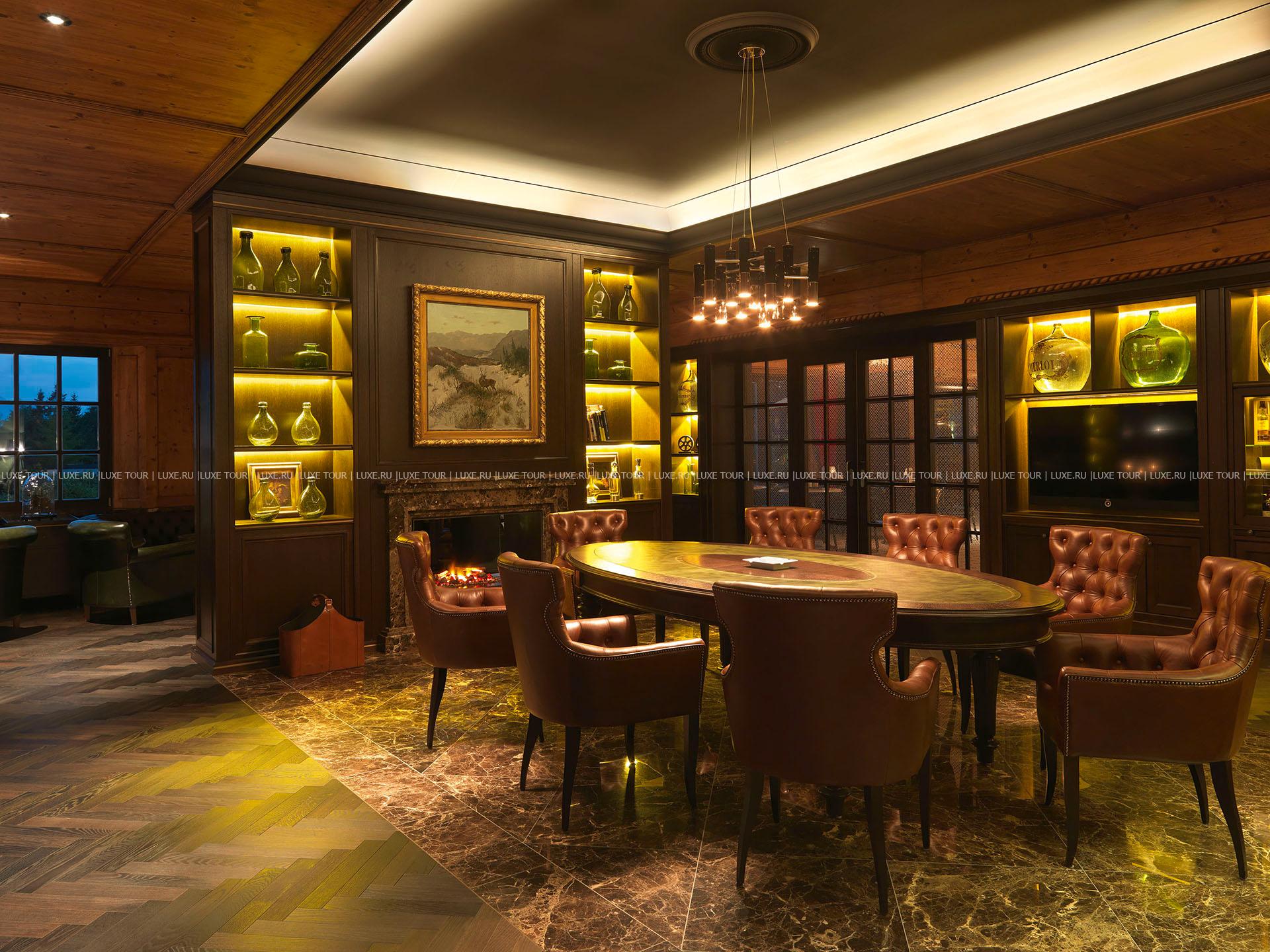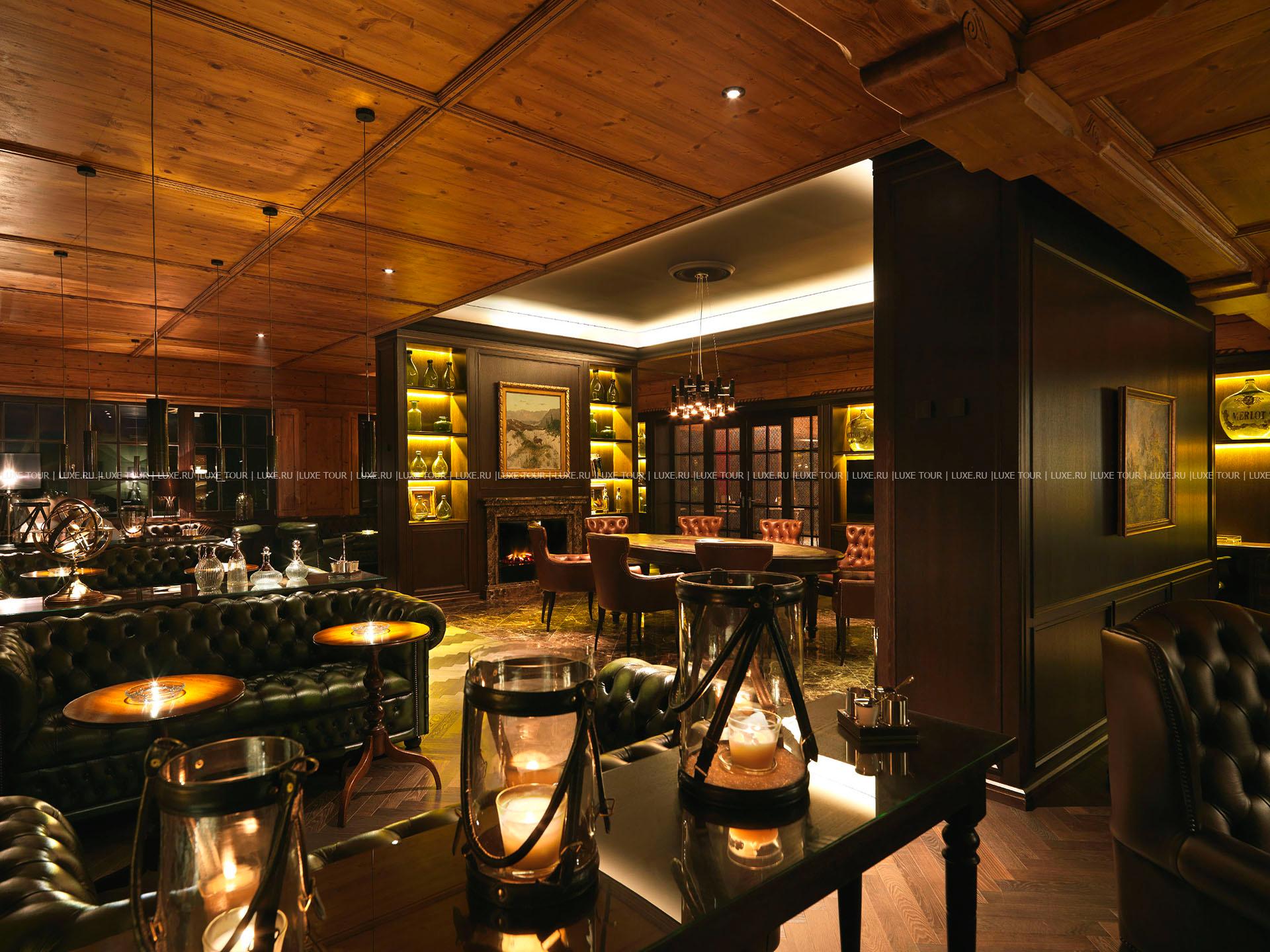 - Стильный бар с камином – прекрасное место для аперитива или вечернего коктейля.