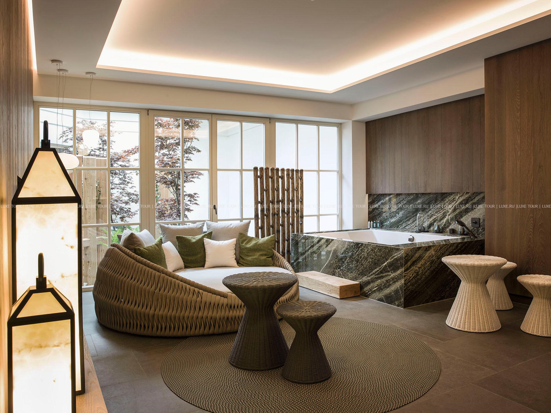Отель располагает роскошным СПА комплексом, где на площади 5 000 м2 имеется: открытый панорамный подогреваемый бассейн с джакузи, крытый бассейн, «деревня» саун (финская сауна, соляной грот, хаммам, кальдариум, альпийская сауна, гидротерапевтическая ванна Кнайппа, разные виды ванн), салон красоты, фитнес-центр со студией йоги и пилатес, открытые и закрытые зоны отдыха. В современно оборудованных процедурных кабинетах комплекса предложен широкий спектр услуг по уходу за телом и лицом: различные виды массажа, рефлексология, разнообразные косметологические и СПА процедуры. В процедурах используются натуральные альпийские продукты и высококлассные косметические средства Sisley, Dermalogica, La Ric и Vinoble. Также предлагаются специальные процедуры для мужчин и детей.