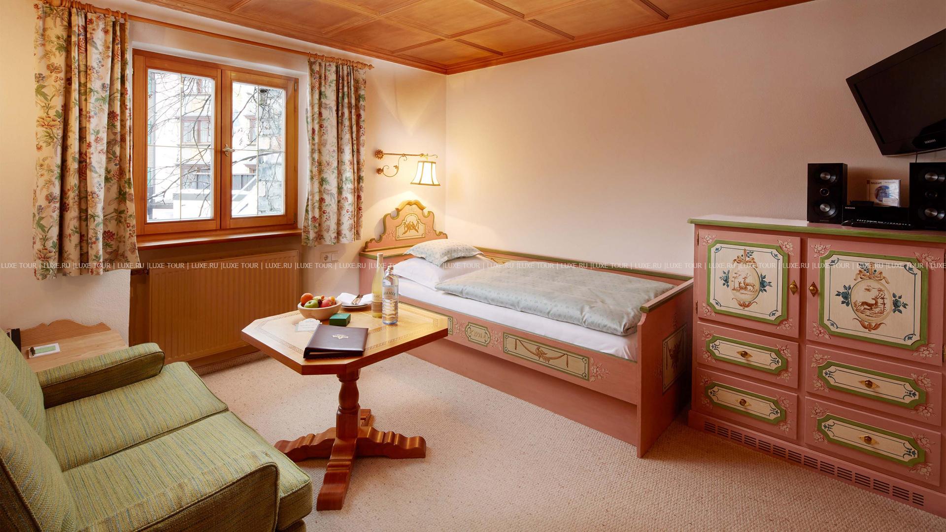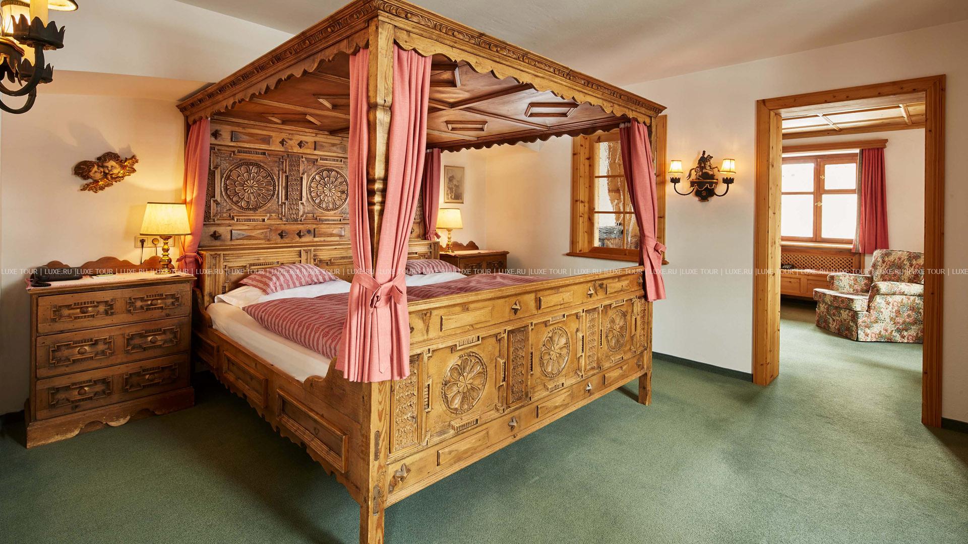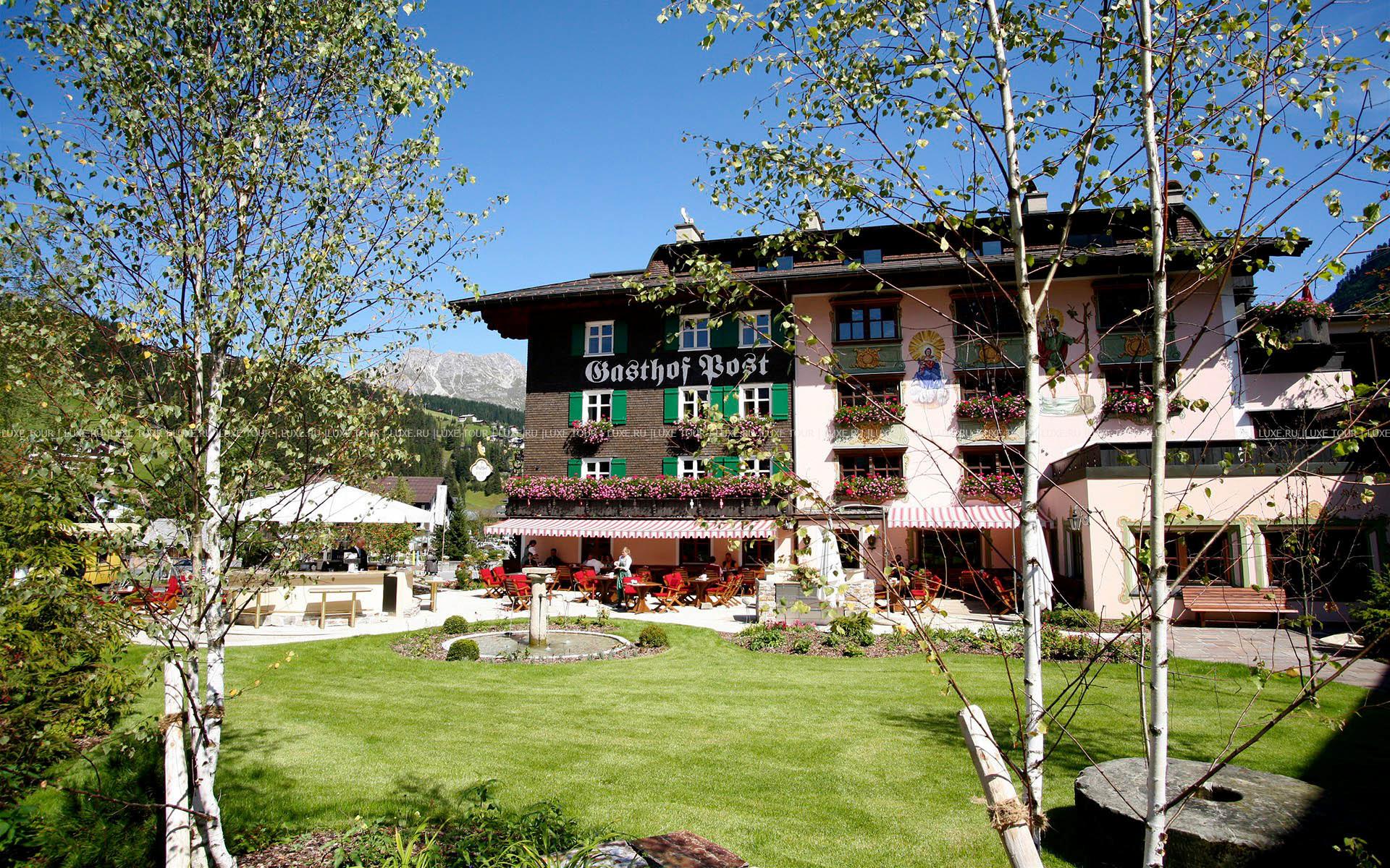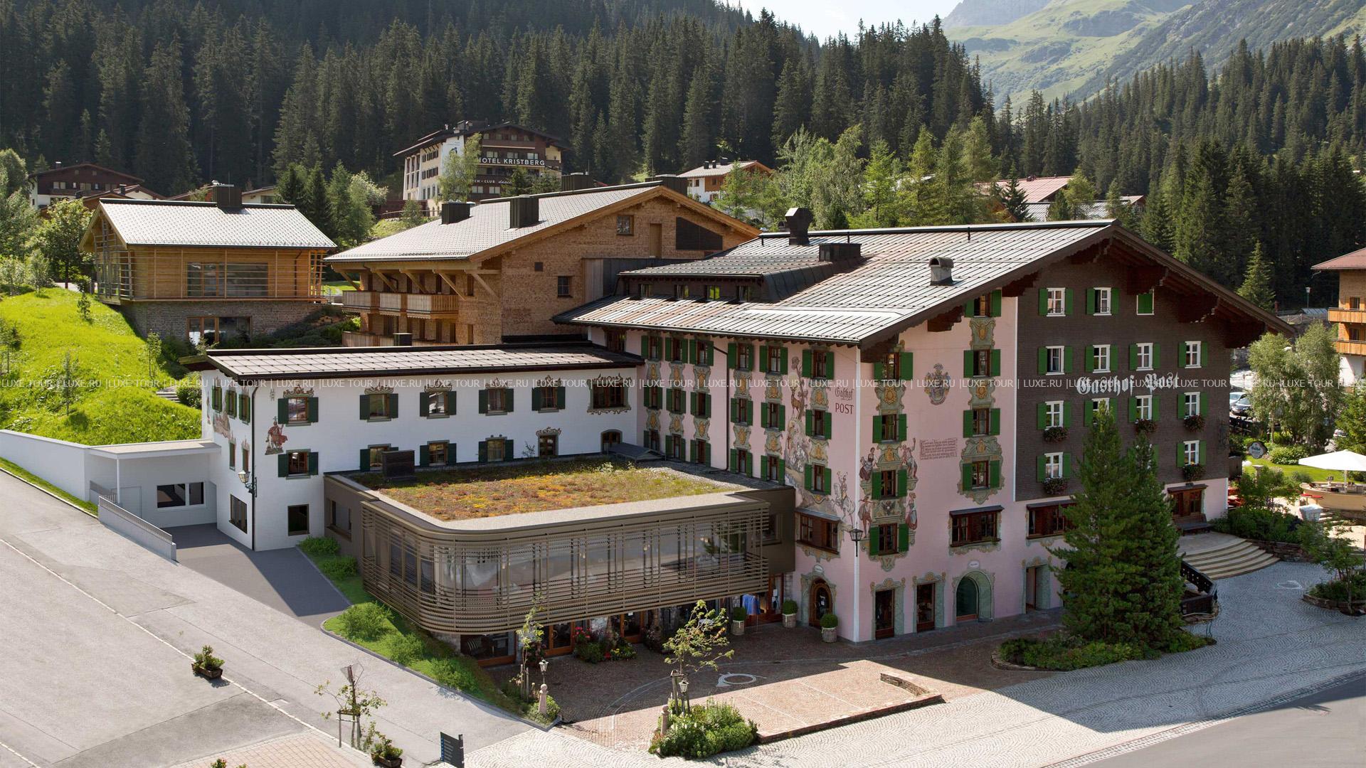 Окруженный живописными горными склонами и просторным парком с ботаническим садом из альпийских растений, Gasthof Pоst ведет свою историю с времен Австро-Венгерской Империи, когда в здании нынешнего отеля находилась почта. В 1937 году семья Moosbrugger открыла отель, в котором до сих пор бережно сохранены традиции прошлых столетий и гостеприимства. Внешний облик Gasthof Pоst напоминает игрушечный домик с разноцветным фасадом и яркими ставнями, украшенный цветами и изображениями святых, внутреннее убранство воссоздает обстановку старинного альпийского охотничьего дома — деревянные потолки и стены, украшенные оленьими рогами и старинной живописью, массивные камины и печи, выложенные изразцами; в комфортабельных номерах — индивидуальные элегантные интерьеры, с отделкой из дерева, антикварной мебелью, изысканными гобеленами, ванные комнаты облицованы голландской кафельной плиткой с изящными орнаментами, изготовленной по специальному заказу отеля.