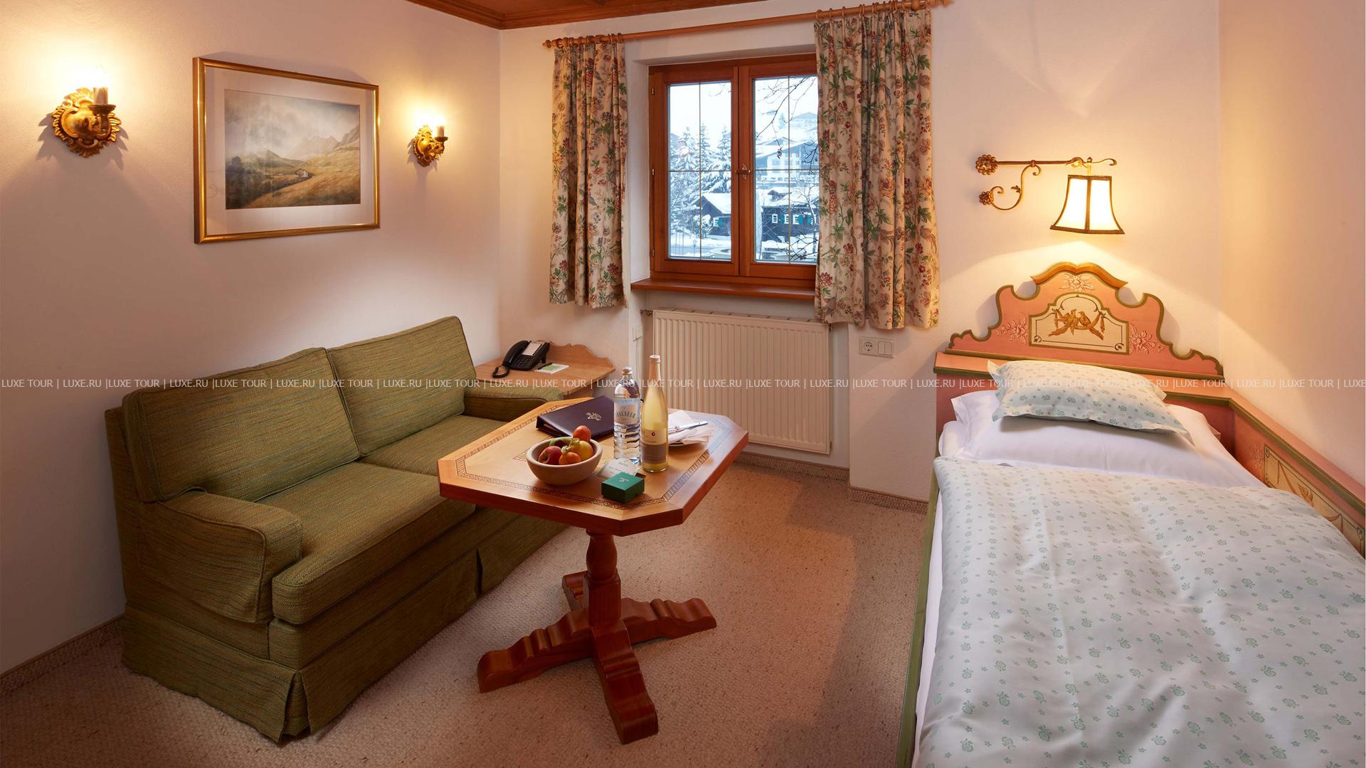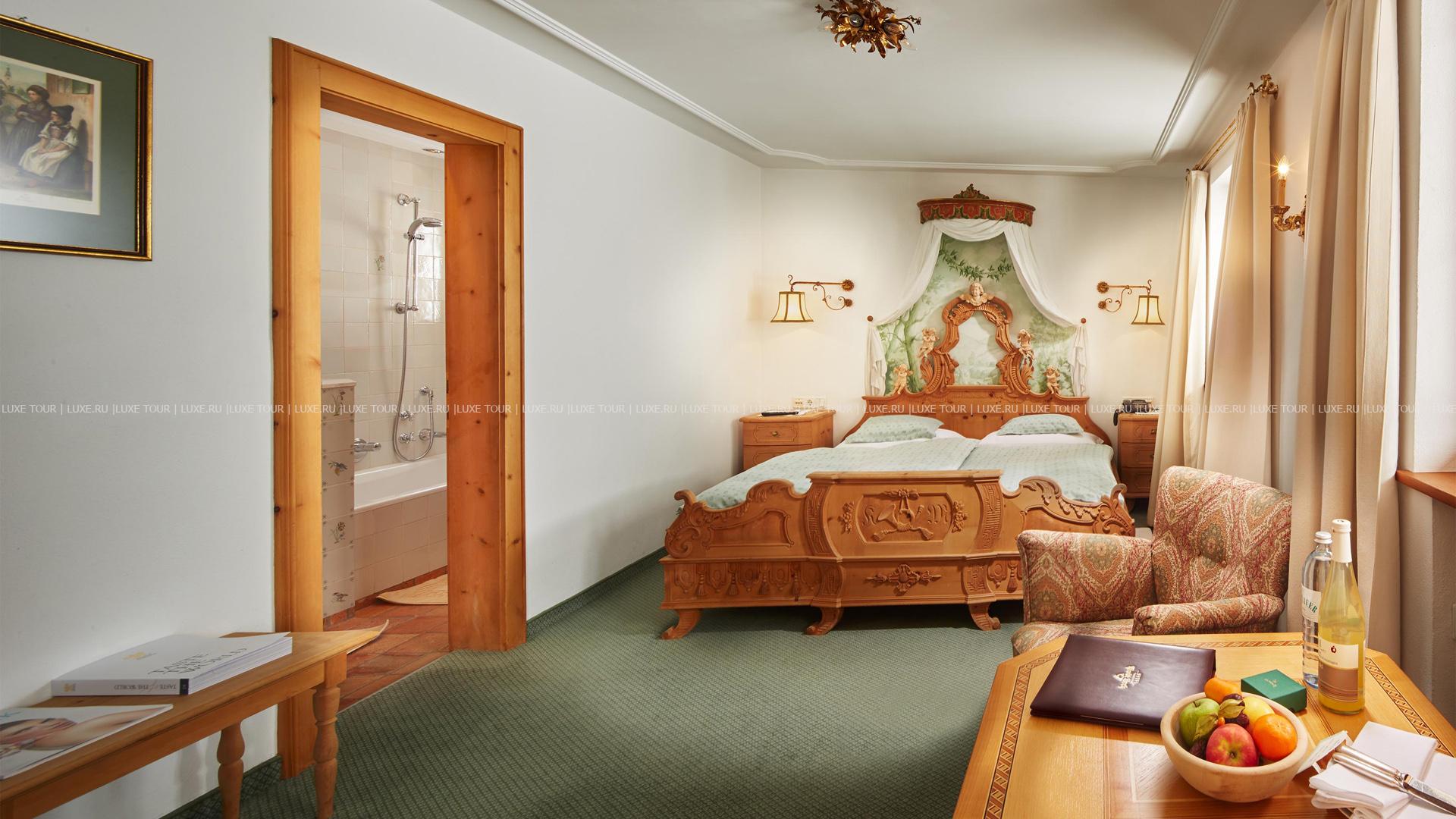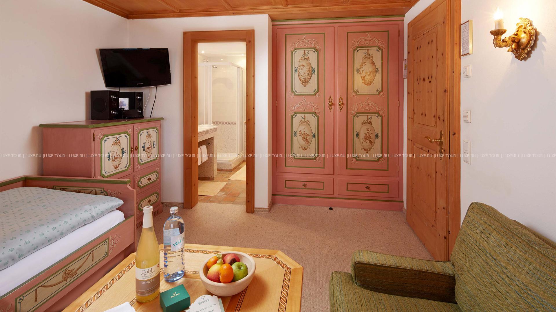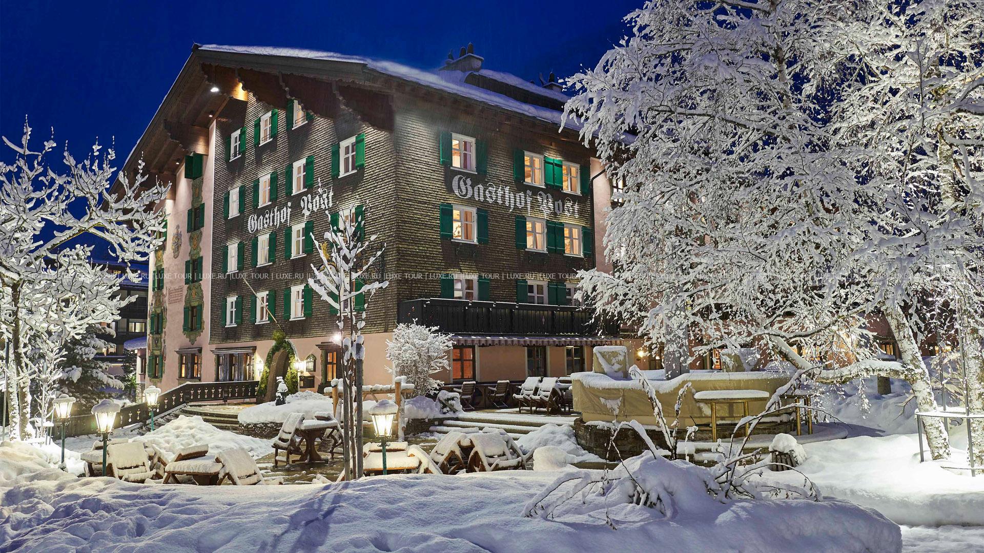 Окруженный живописными горными склонами и просторным парком с ботаническим садом из альпийских растений, Gasthof Pоst ведет свою историю с времен Австро-Венгерской Империи, когда в здании нынешнего отеля находилась почта. В 1937 году семья Moosbrugger открыла отель, в котором до сих пор бережно сохранены традиции прошлых столетий и гостеприимства. Внешний облик Gasthof Pоst напоминает игрушечный домик с разноцветным фасадом и яркими ставнями, украшенный цветами и изображениями святых, внутреннее убранство воссоздает обстановку старинного альпийского охотничьего дома — деревянные потолки и стены, украшенные оленьими рогами и старинной живописью, массивные камины и печи, выложенные изразцами; в комфортабельных номерах — индивидуальные элегантные интерьеры, с отделкой из дерева, антикварной мебелью, изысканными гобеленами, ванные комнаты облицованы голландской кафельной плиткой с изящными орнаментами, изготовленной по специальному заказу отеля.