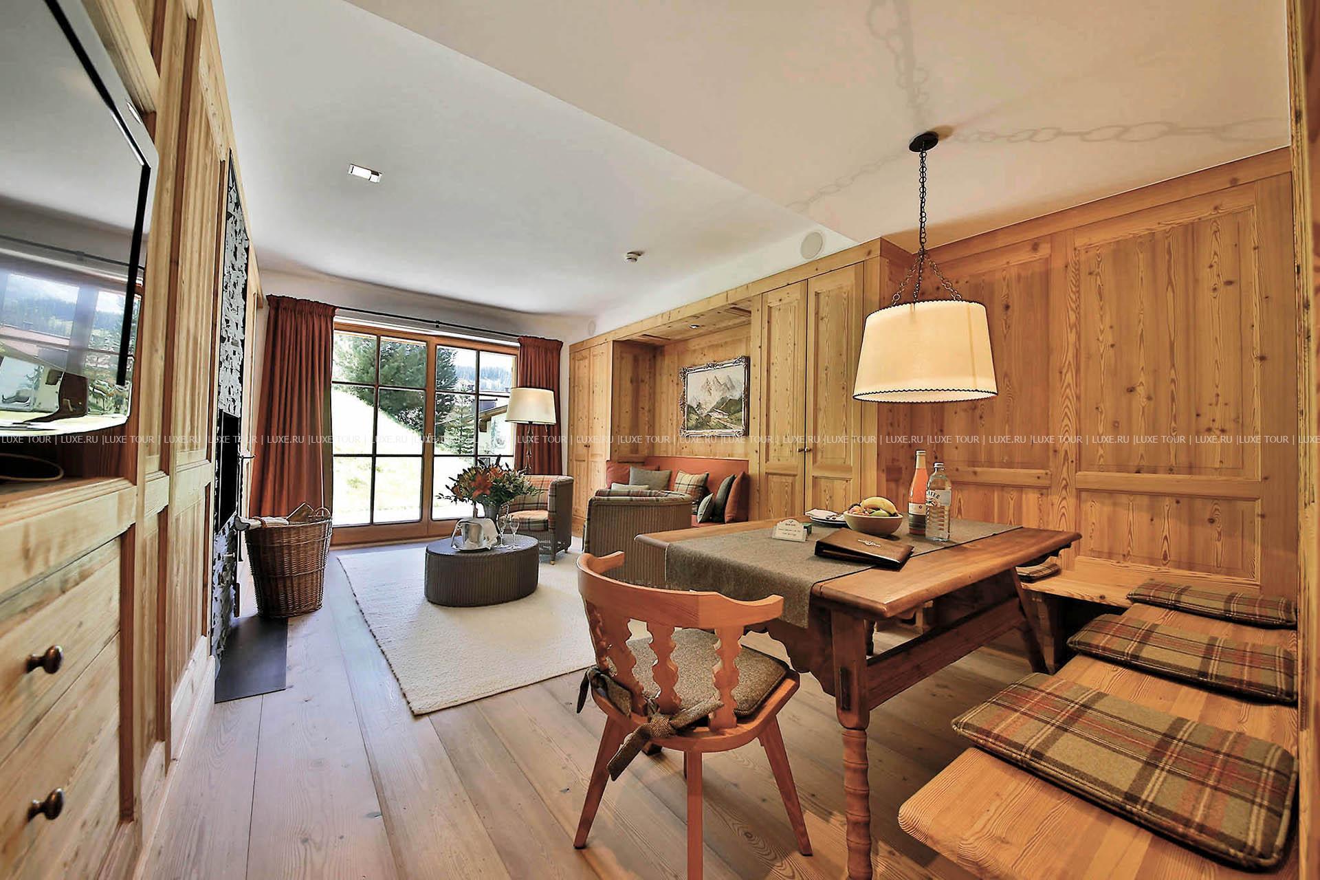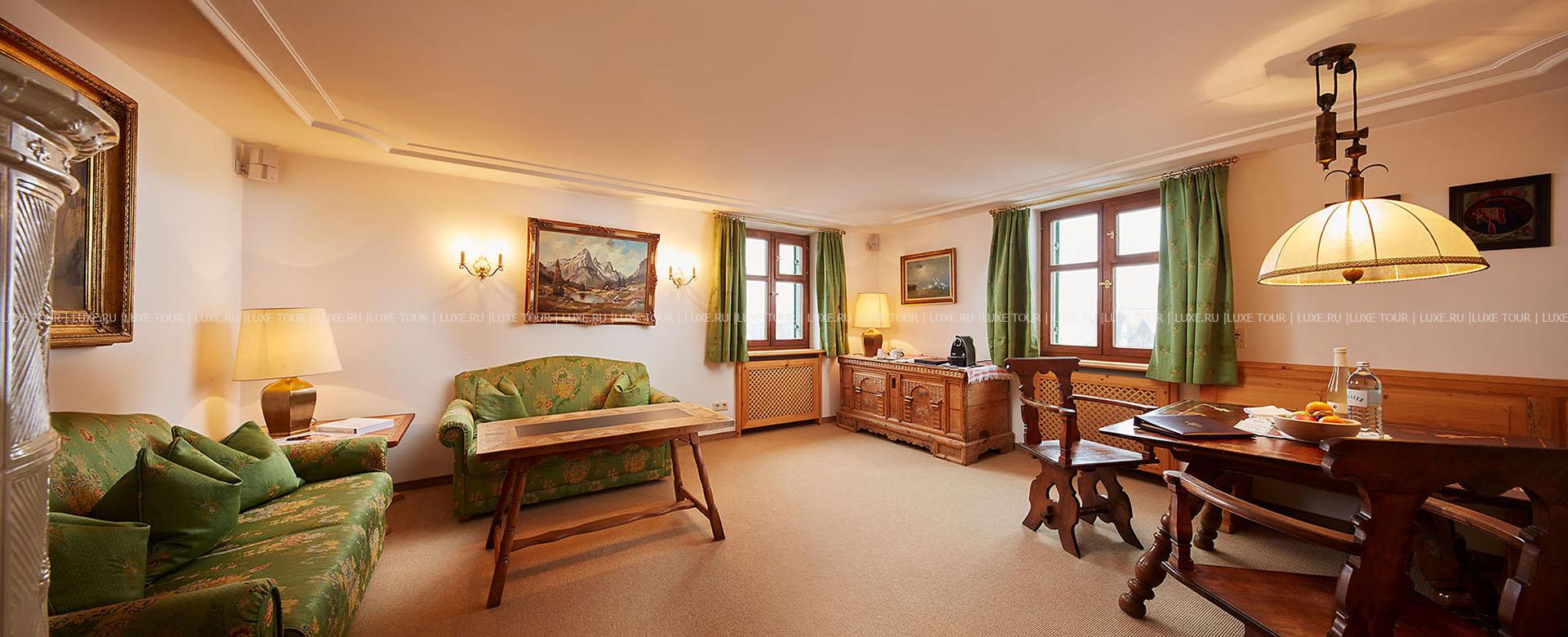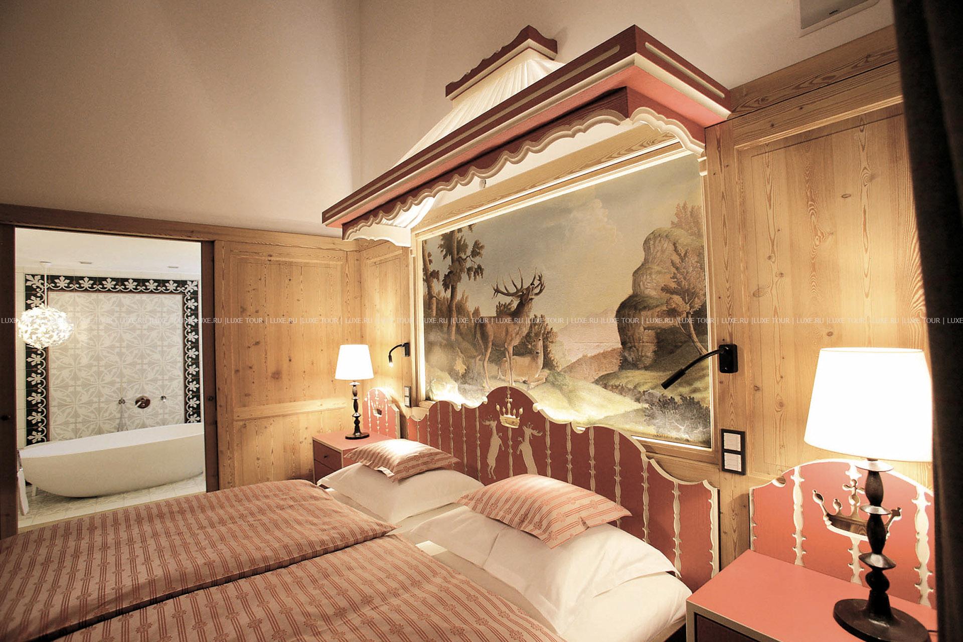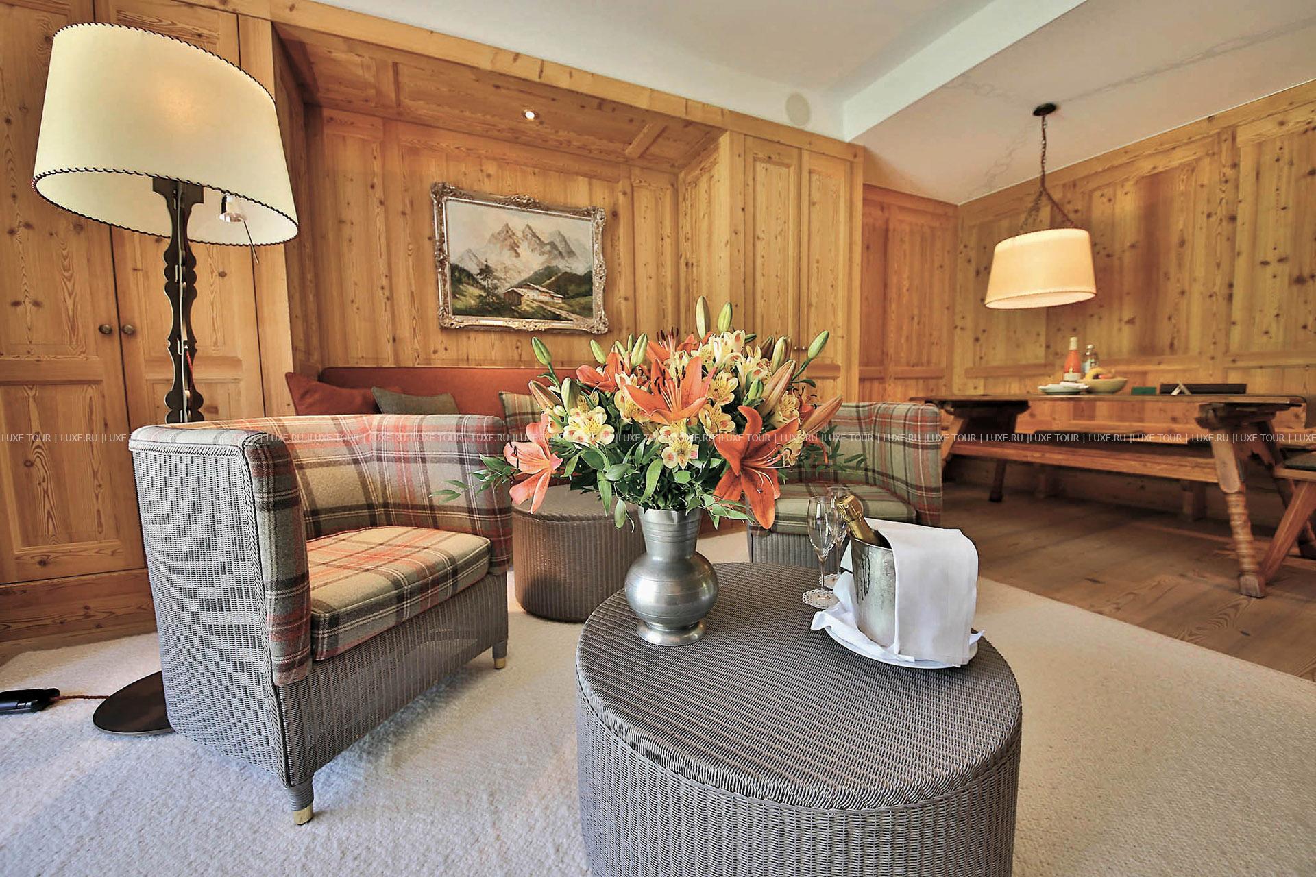 Окруженный живописными горными склонами и просторным парком с ботаническим садом из альпийских растений, Gasthof Pоst ведет свою историю с времен Австро-Венгерской Империи, когда в здании нынешнего отеля находилась почта. В 1937 году семья Moosbrugger открыла отель, в котором до сих пор бережно сохранены традиции прошлых столетий и гостеприимства. Внешний облик Gasthof Pоst напоминает игрушечный домик с разноцветным фасадом и яркими ставнями, украшенный цветами и изображениями святых, внутреннее убранство воссоздает обстановку старинного альпийского охотничьего дома — деревянные потолки и стены, украшенные оленьими рогами и старинной живописью, массивные камины и печи, выложенные изразцами; в комфортабельных номерах — индивидуальные элегантные интерьеры, с отделкой из дерева, антикварной мебелью, изысканными гобеленами, ванные комнаты облицованы голландской кафельной плиткой с изящными орнаментами, изготовленной по специальному заказу отеля.