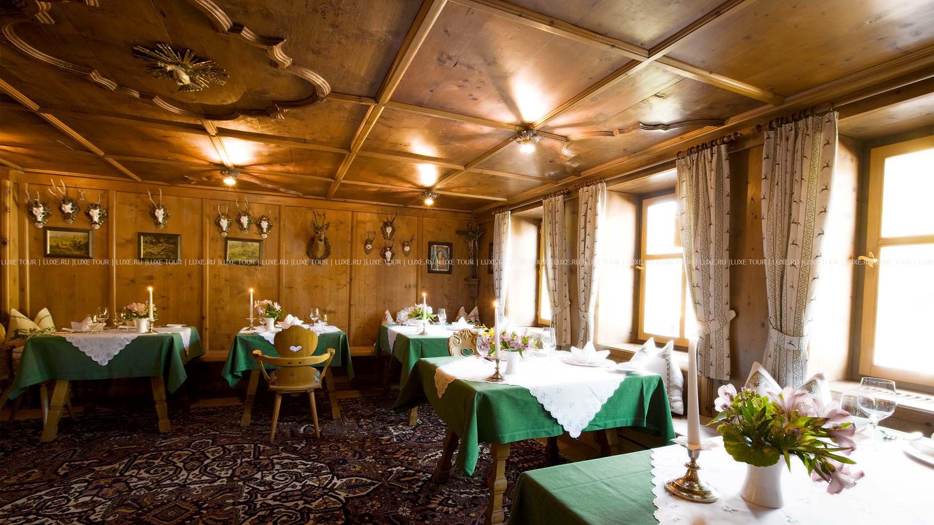 Отель предлагает разнообразие изысканных блюд австрийской кухни в различных интерьерах: в элегантном зале основного ресторана, старинном холле с камином, в Post-Café, где подаются ароматный кофе и аппетитная выпечка, включая знаменитый штрудель. В теплое время можно приятно отдохнуть на открытой террасе просторного ботанического сада, окружающего отель, — здесь предлагаются чай, всевозможные напитки и легкие закуски. В уютном баре отеля — напитки на любой вкус и лучшие вина со всей Европы из собственного винного погреба отеля.