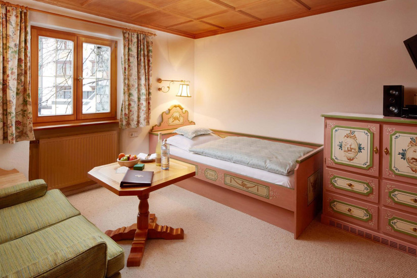 В отеле 37 номеров различных категорий, включая Single Room, Double Room, Jager Room, Postillion Apartment, Postmeister Apartment, Herzog Suite, Fursten Suite. Во всех номерах — индивидуальные элегантные интерьеры, выполненные в альпийском стиле, с отделкой из дерева, антикварной мебелью, украшенные изысканными гобеленами и живописью, ванные комнаты облицованы голландской кафельной плиткой с изящными орнаментами, изготовленной по специальному заказу отеля.