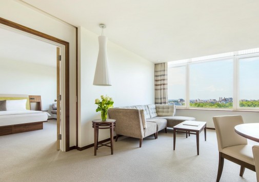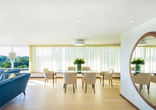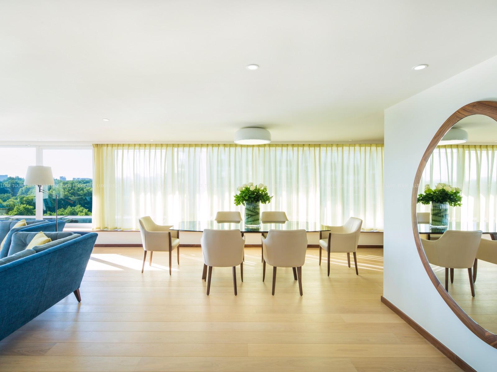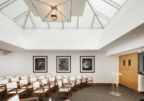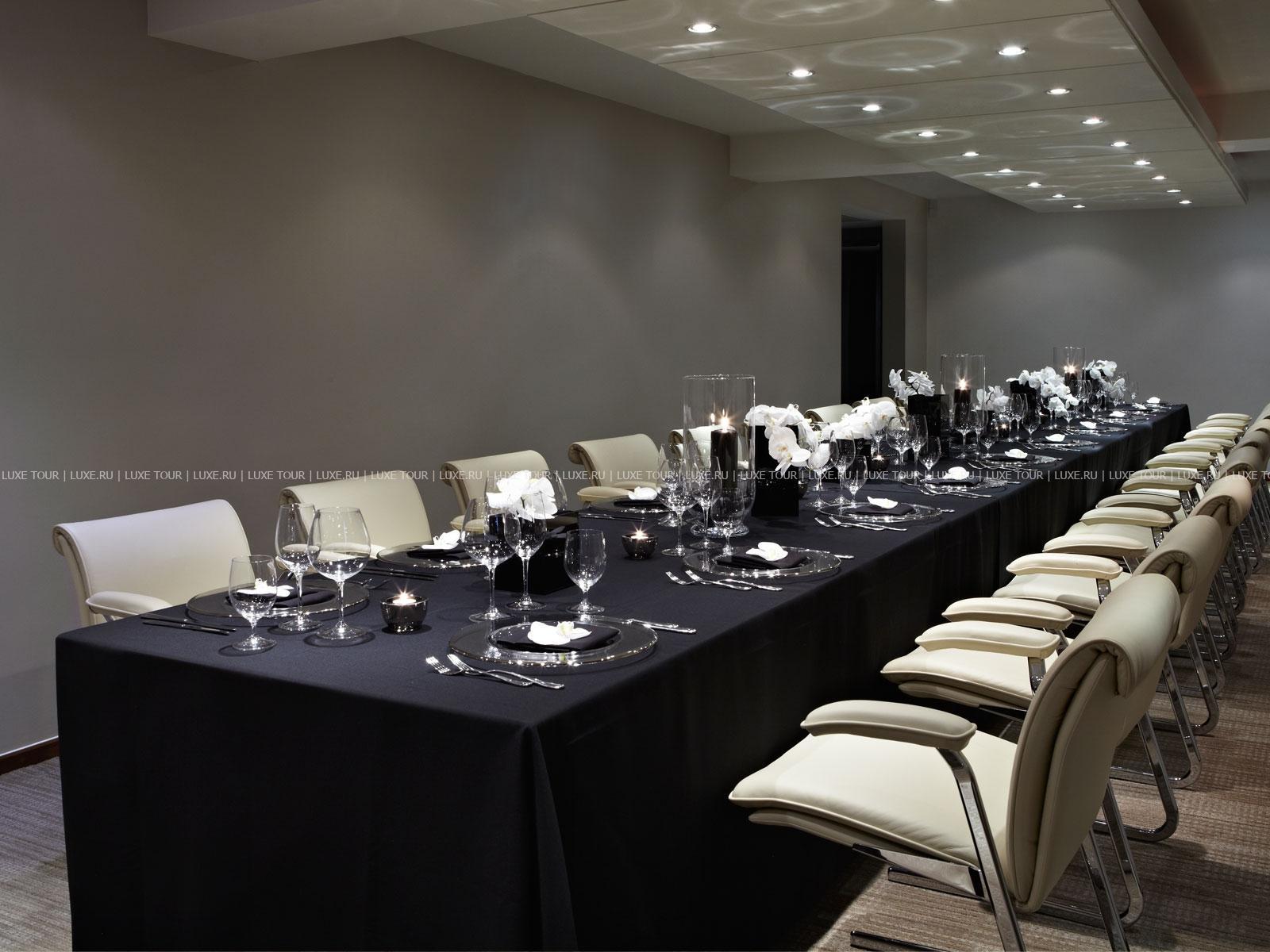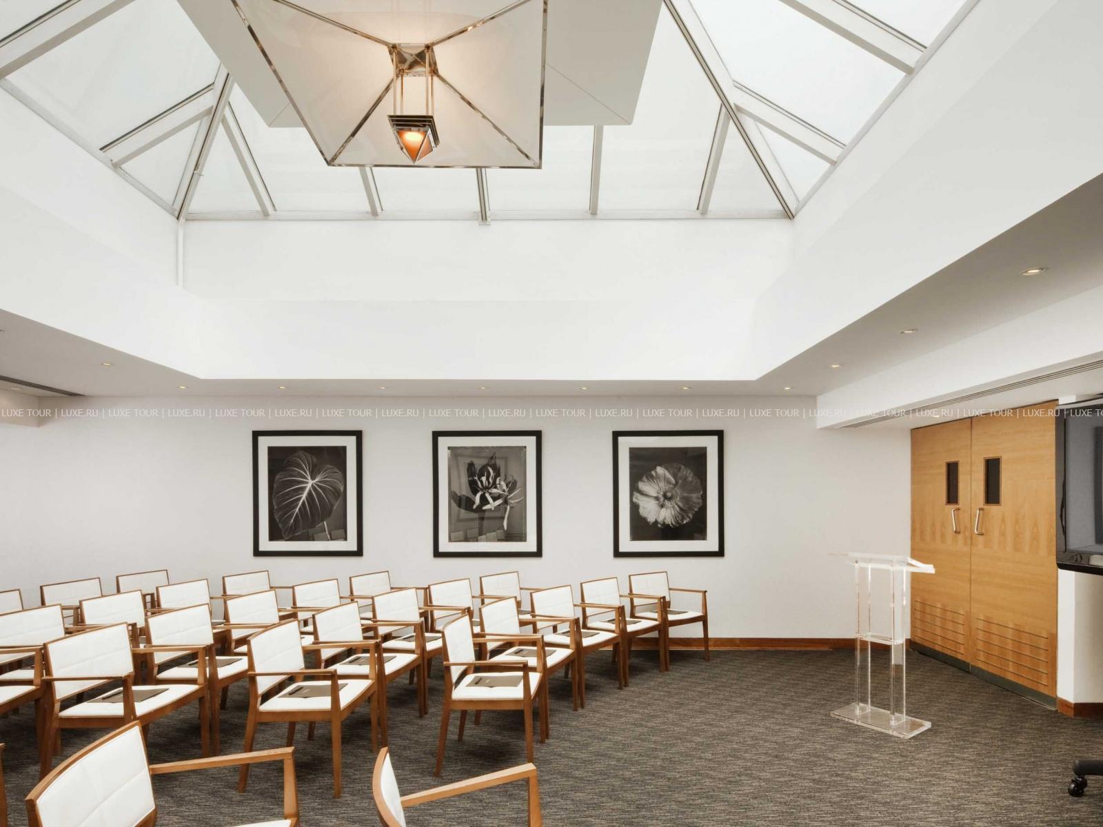 Зал White Room, оформленный в белых тонах, с прозрачным куполом потолка, — прекрасное место для банкетов, коктейлей и частных вечеринок.