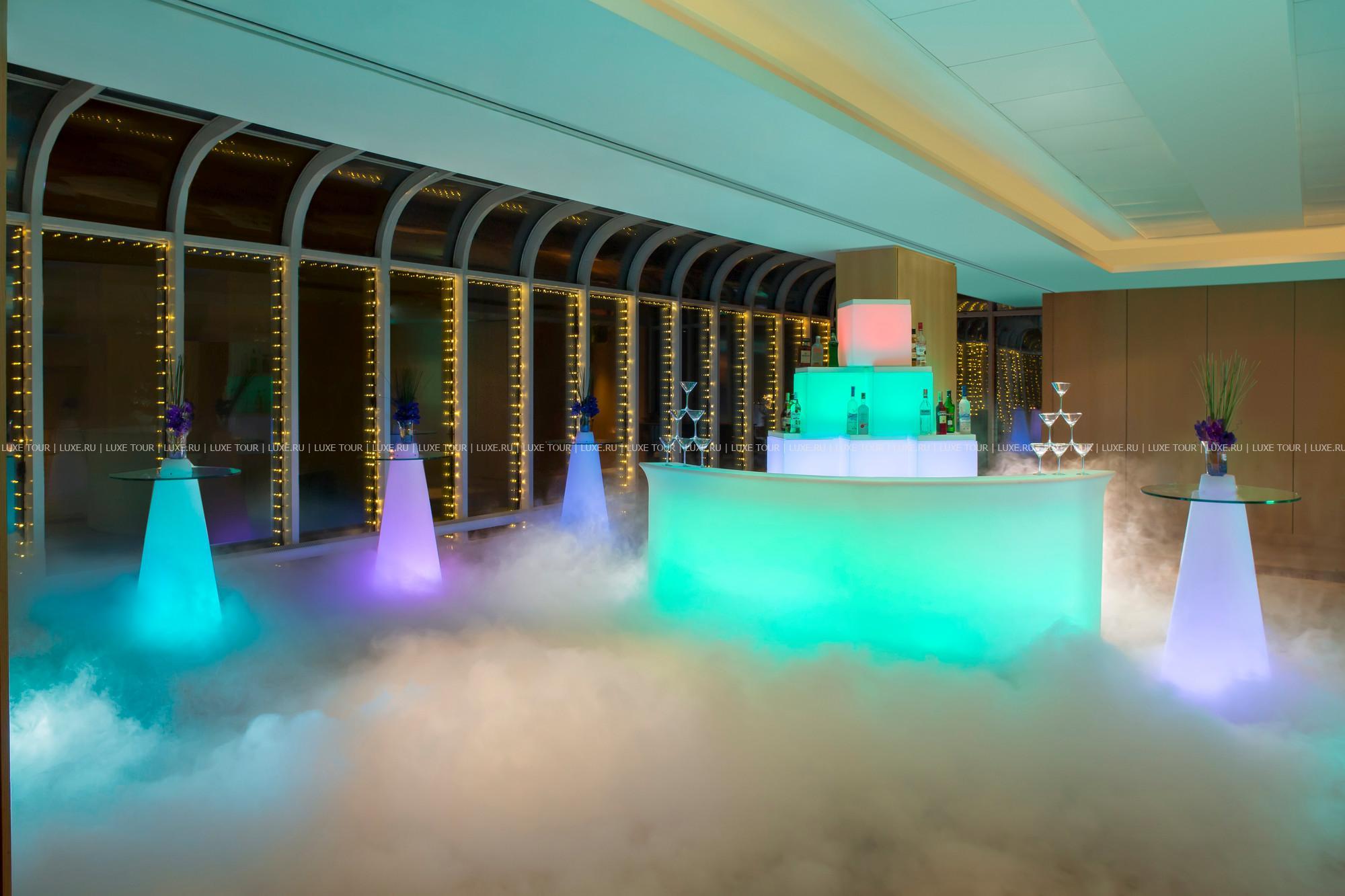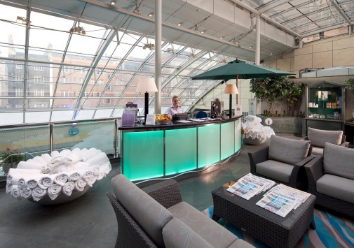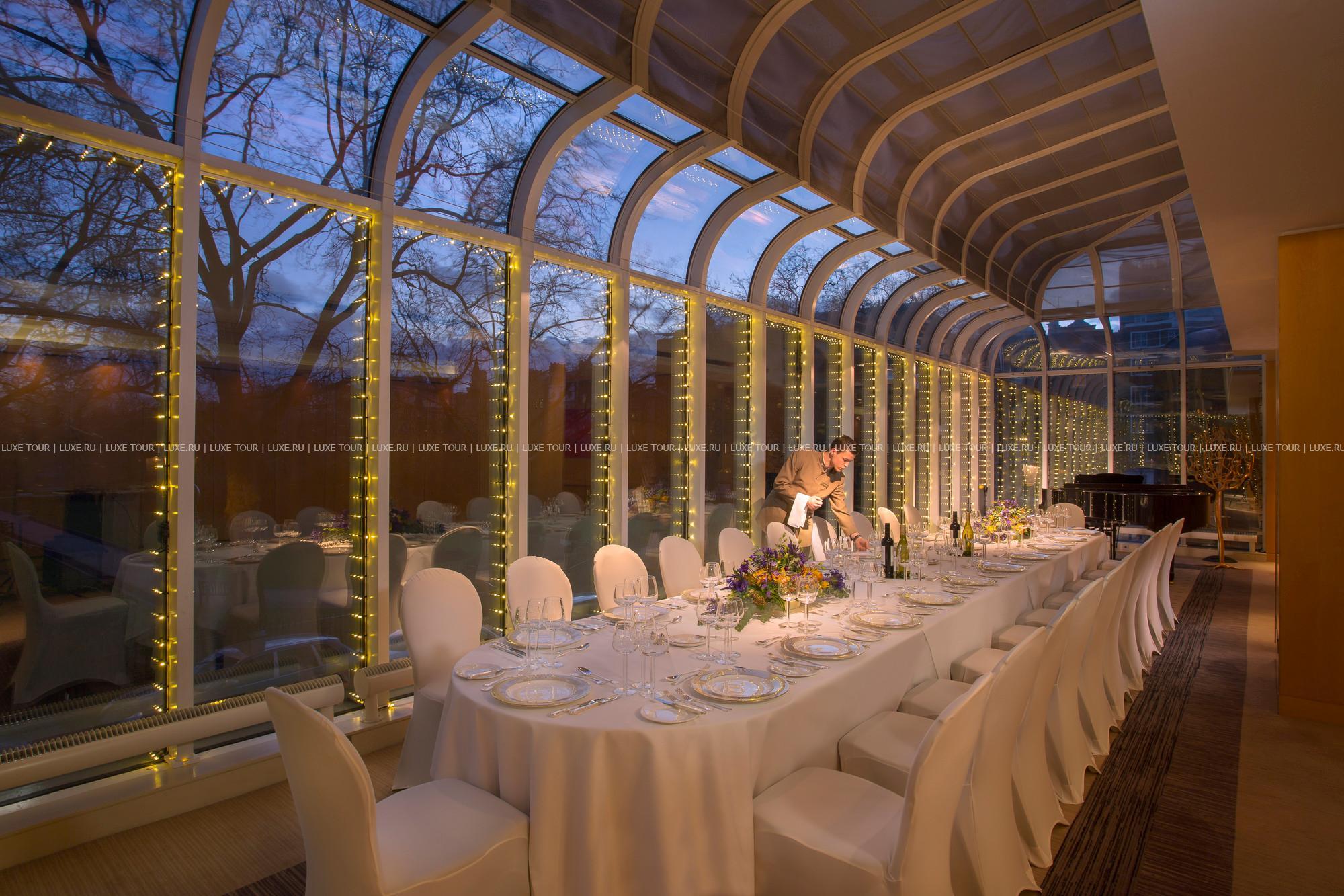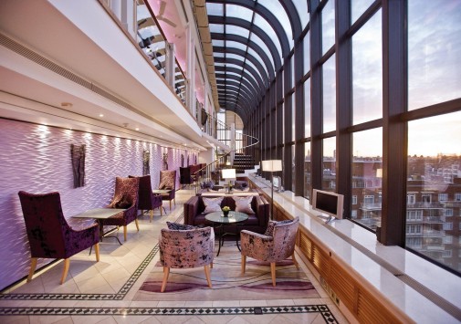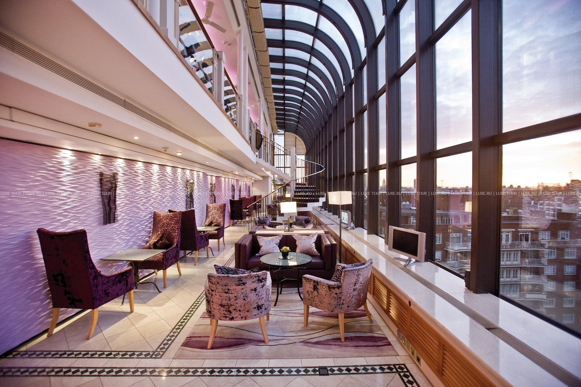 В стильном баре Club Room, расположенном на 9 этаже, можно перекусить и выпить коктейль, любуясь панорамным видом на Лондон.