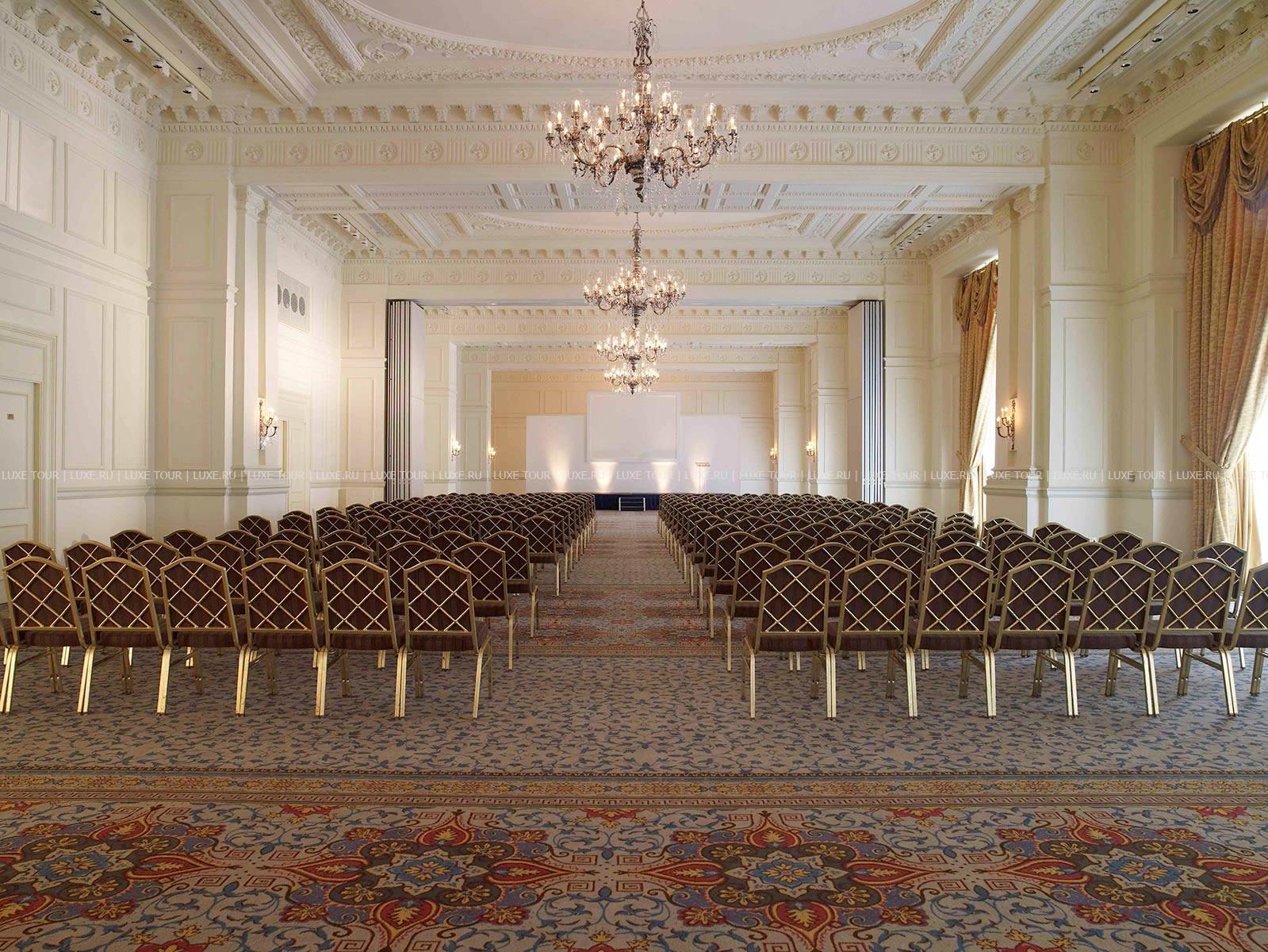 10 залов для заседаний и банкетов — прекрасное место для проведения деловых и торжественных мероприятий. Для гостей — бутик, парикмахерская и салон красоты, аренда автомобилей, лимузин-сервис, услуги прачечной и химчистки.