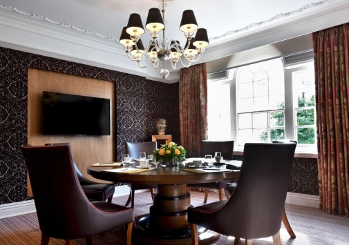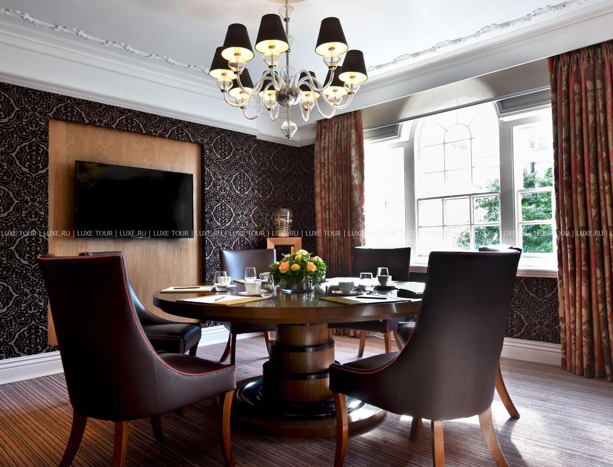 Ресторан The Dining Room знаменит на весь Лондон не только люстрами Swarowski, меняющих цвет с голубого на розовый в зависимости от времени суток, но и блюдами аутентичной британской кухни от шеф-повара Дерека Квелча.