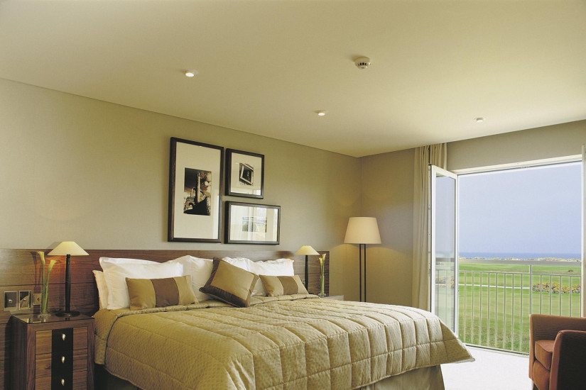 - В отеле 144 комфортабельных номера различных категорий, включая Eden Room, Old Course Room, Eden Suite, Old Course Suite, Fairway Suite, Deluxe Suite, Royal & Ancient Suite. Во всех номерах — элегантные интерьеры в современном английском стиле, выдержанные в теплых тонах, с удобной мебелью, большими окнами, откуда открывается чудесный вид на окружающие ландшафты и морское побережье, ковровым покрытием на полах, мягким освещением, изысканной живописью на стенах.