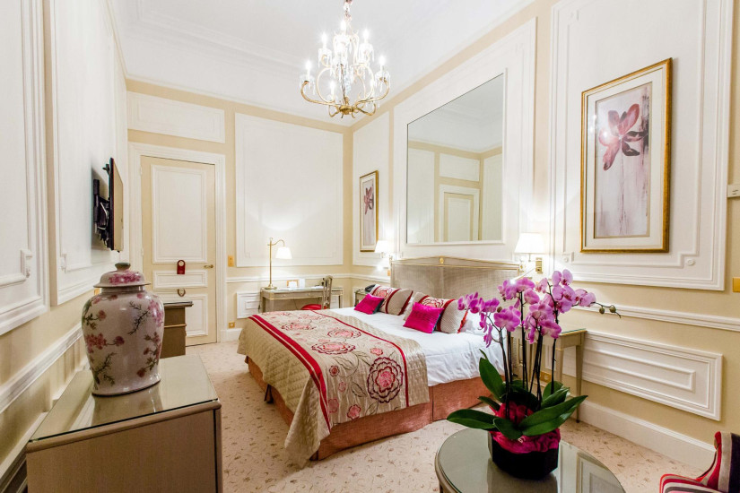 - 100-120 м2. Роскошные королевские апартаменты могут состоять из одной, двух или трех спален с собственными ванными комнатами, объединенных просторной гостиной. Каррарский мрамор, полы и элементы декора из бирманского тикового дерева, итальянские мозаики - все это лишь часть благородных и ценных материалов, которые были использованы в отделке номеров.