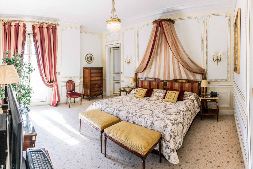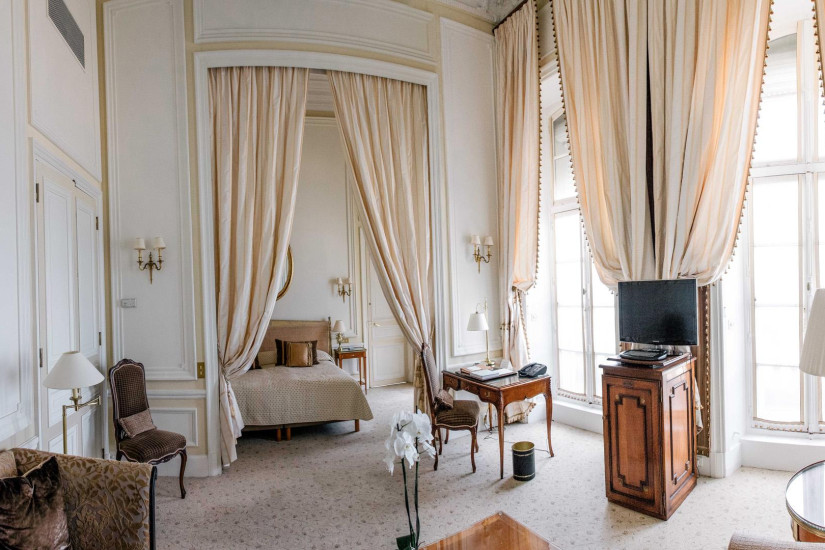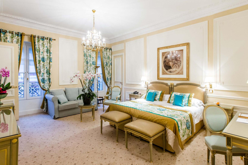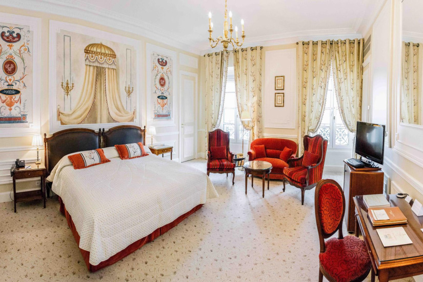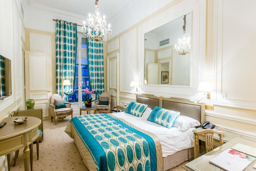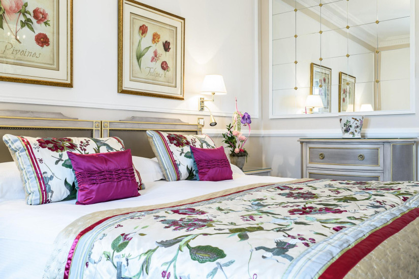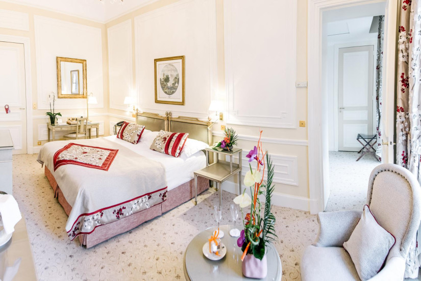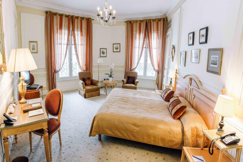 - В отеле номера различных категорий, включая Rooms и Suites. Номера оформлены в светлых тонах. Их отличают потолки с художественной лепниной, большие окна, уютные диваны и кресла, а также изысканная мебель в стиле ампир. Комнаты 1-3 этажей носят исторический облик: в них бережно сохраняют подлинный классический дворцовый стиль эпохи Наполеона III. Номера на 1-3 и 4-5 этажах не отличаются по стоимости, но разнятся по площади, высоте потолков, размеру окон и декору: номера на 4 этаже на 10 кв. метров больше по площади, однако высота потолков ниже, как и размер окон. 5 этаж - Pethouse Floor - в отличие от исторической части здания, построенной Наполеоном III, где все номера декорированы в стиле эпохи Второй Империи, темой заново созданных комнат и сюитов (2005 год) стала атмосфера океанского лайнера. Из окон большинства номеров, напоминающих иллюминаторы гигантского корабля, открывается панорамный вид на океан и знаменитый маяк Биаррица.