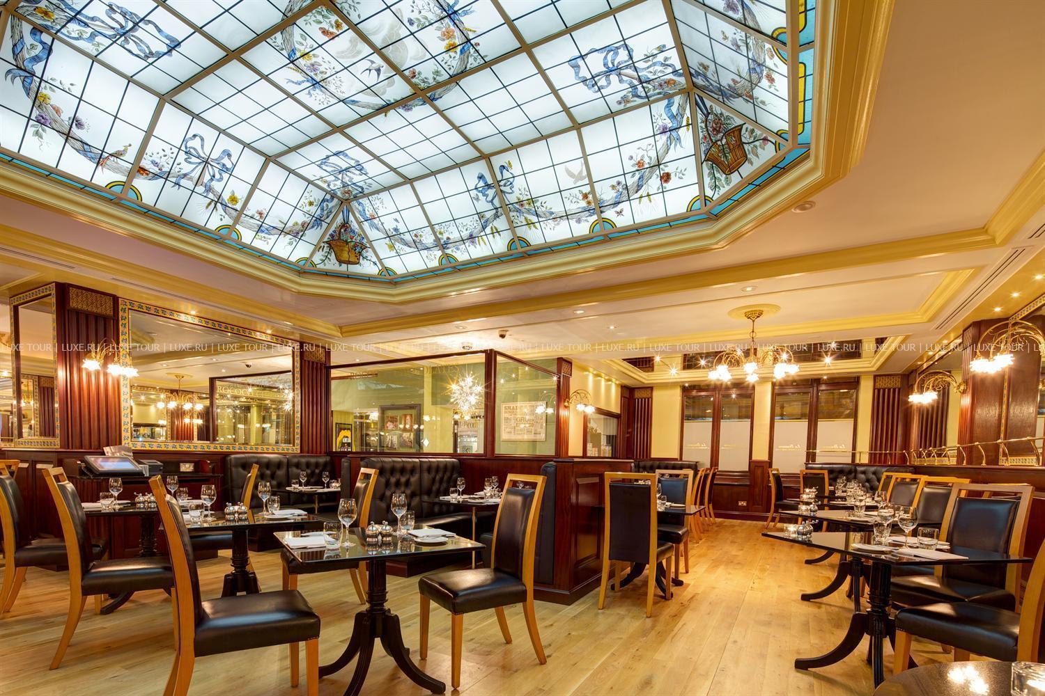 Более расслабляющая обстановка ресторана La Brasserie, образец истинного парижского шика, подчеркнутого черными кожаными диванами и креслами, полированными гранитными столешницами и расписанной вручную застекленной крышей, идеально подходит для неформальных обедов в дружеской компании.