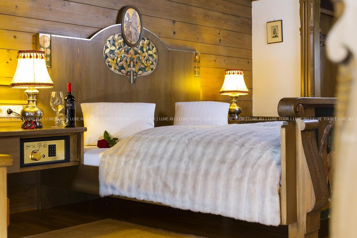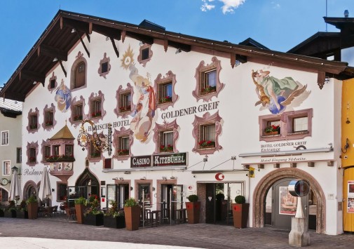 Аккуратное, с нарядным фасадом, здание Goldener Greif расположено в центре горнолыжного курорта Кицбюэль, в окружении старинных, вымощенных булыжником, улочек и величественных горных пейзажей. Отель, многие годы принадлежащий семье Хариш (Harisch), встречает гостей радушным гостеприимством и домашним уютом. В комфортабельных номерах — элегантные интерьеры, с отделкой и мебелью из натурального дерева, мягкими коврами на полах, изящными украшениями в тирольском стиле.