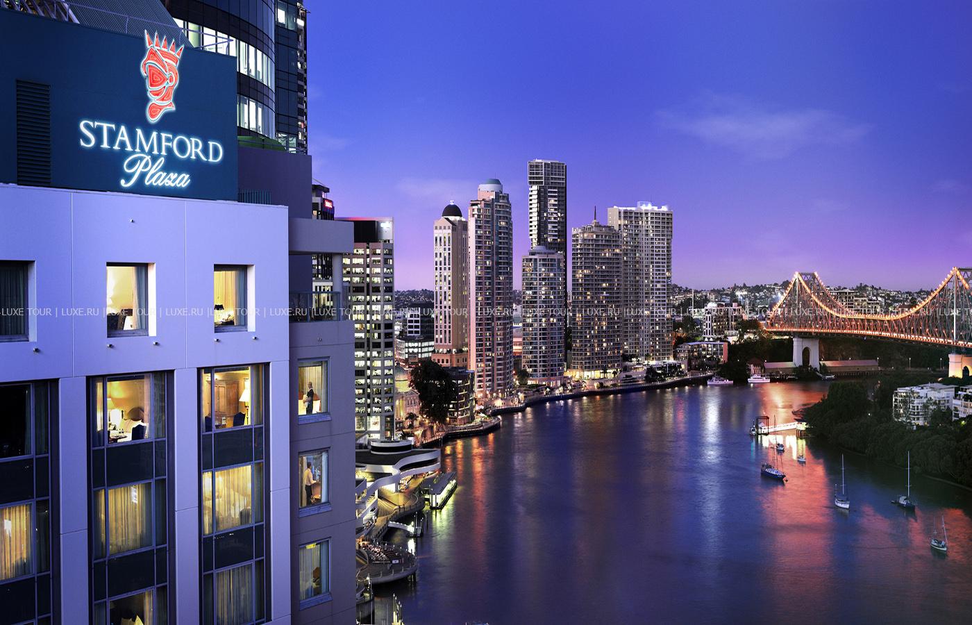 Современный комфортабельный Stamford Plaza, расположенный на живописном берегу реки Брисбен, рядом с ботаническим садом, магазинами, ресторанами, театрами и ночными клубами города, сочетает утонченное великолепие модного дизайна и многообразие услуг. В просторных номерах – стильные интерьеры в светлых тонах, с ковровым покрытием на полах, изящной мебелью, изысканными украшениями и большими панорамными окнами, откуда открывается чудесный вид на реку, город и ботанический сад. В отеле находится Оздоровительный Центр, включающий открытый бассейн с подогревом, джакузи, сауну, тренажерный зал.