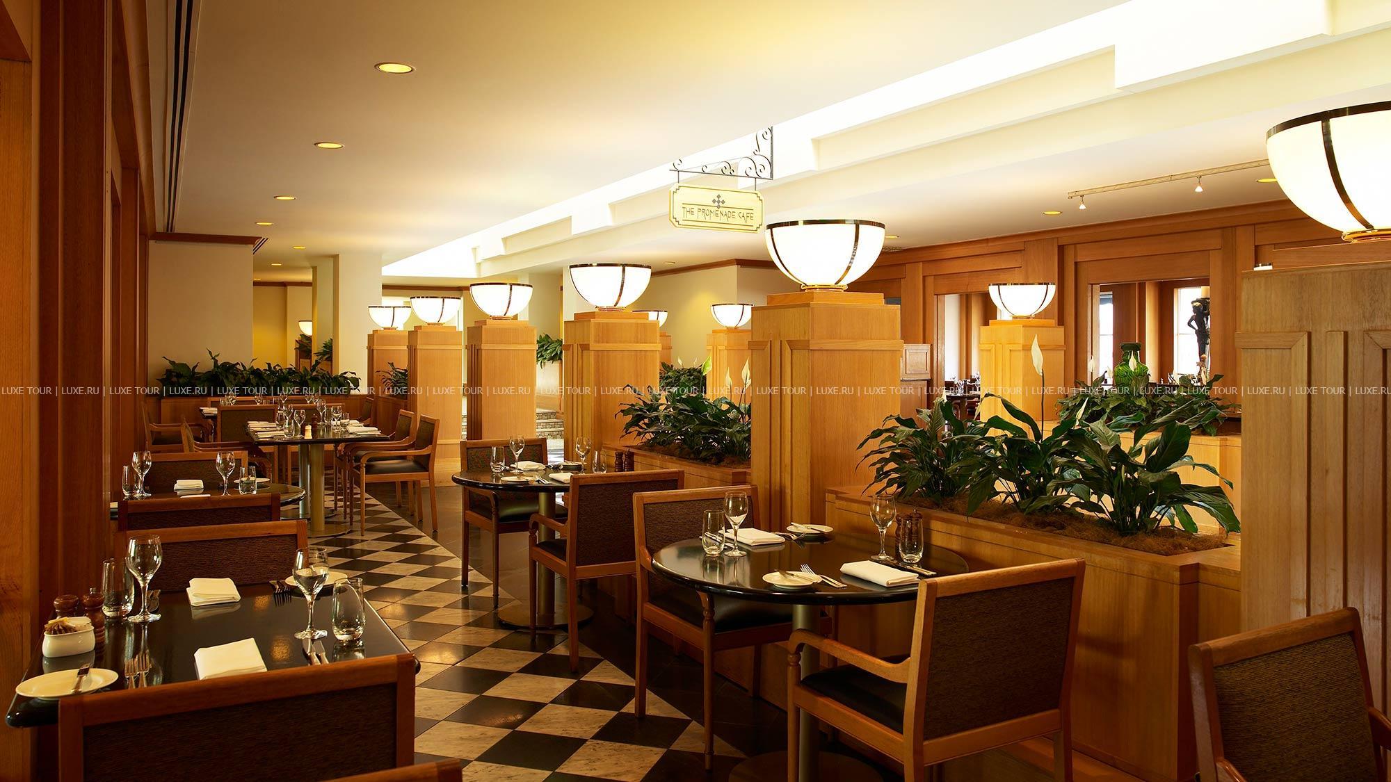 Promenade Cafe предлагает холодные закуски, блюда из морепродуктов, салаты, сыры и свежеиспеченный хлеб, горячие блюда готовятся по рецептах средиземноморской и австралийской кухни, гостям предложат огромный выбор десертов.