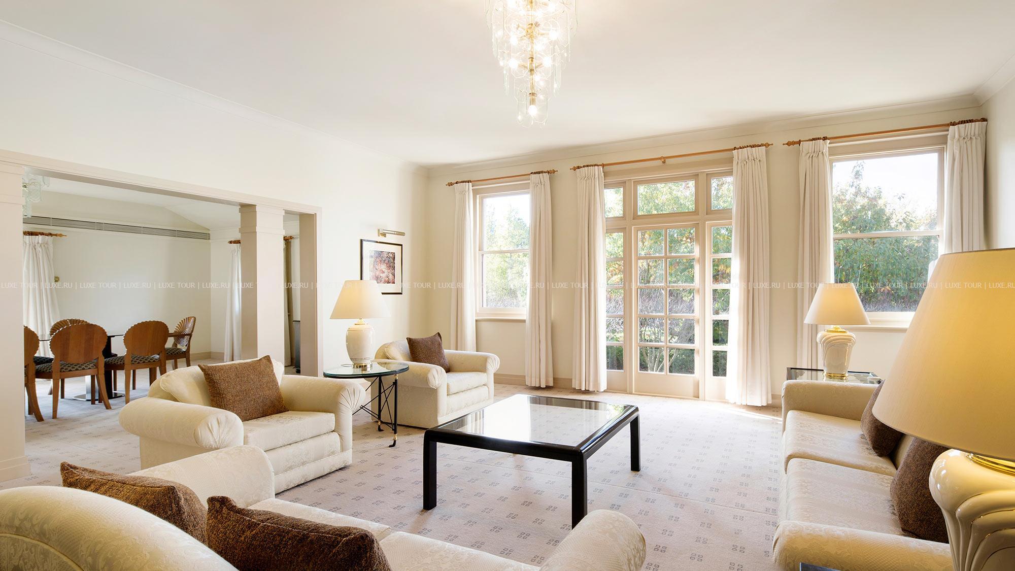 Легкие блюда и выпечку гостям подадут в гостиной Tea Lounge. Традиционно здесь сервируют плотные ужины с чаем.