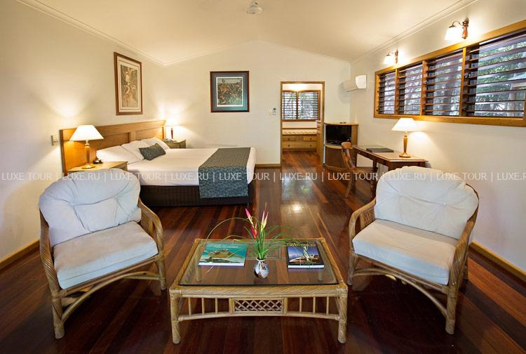 У сверкающего лазурью Кораллового моря и белоснежной кромки частных пляжей протяженностью 2 км, среди густых зарослей влажных тропических лесов, сохранивших остатки древнего материка Гондваны, расположился Thala Beach Lodge Кэрнс, сочетающий атмосферу уединенности и изысканности. Комфортабельные бунгало, построенные из натурального дерева местных пород, скрыты под сенью эвкалиптовых деревьев и окружены заповедным парком, где обитают экзотические птицы и бабочки, а с уютных террас открывается чудесный вид на море и покрытые зеленью горные склоны. На территории Thala Beach Lodge Кэрнс находятся два живописных бассейна, окруженные садом, превосходный СПА Центр, предлагаются различные виды водного спорта, увлекательные программы эко-туризма.