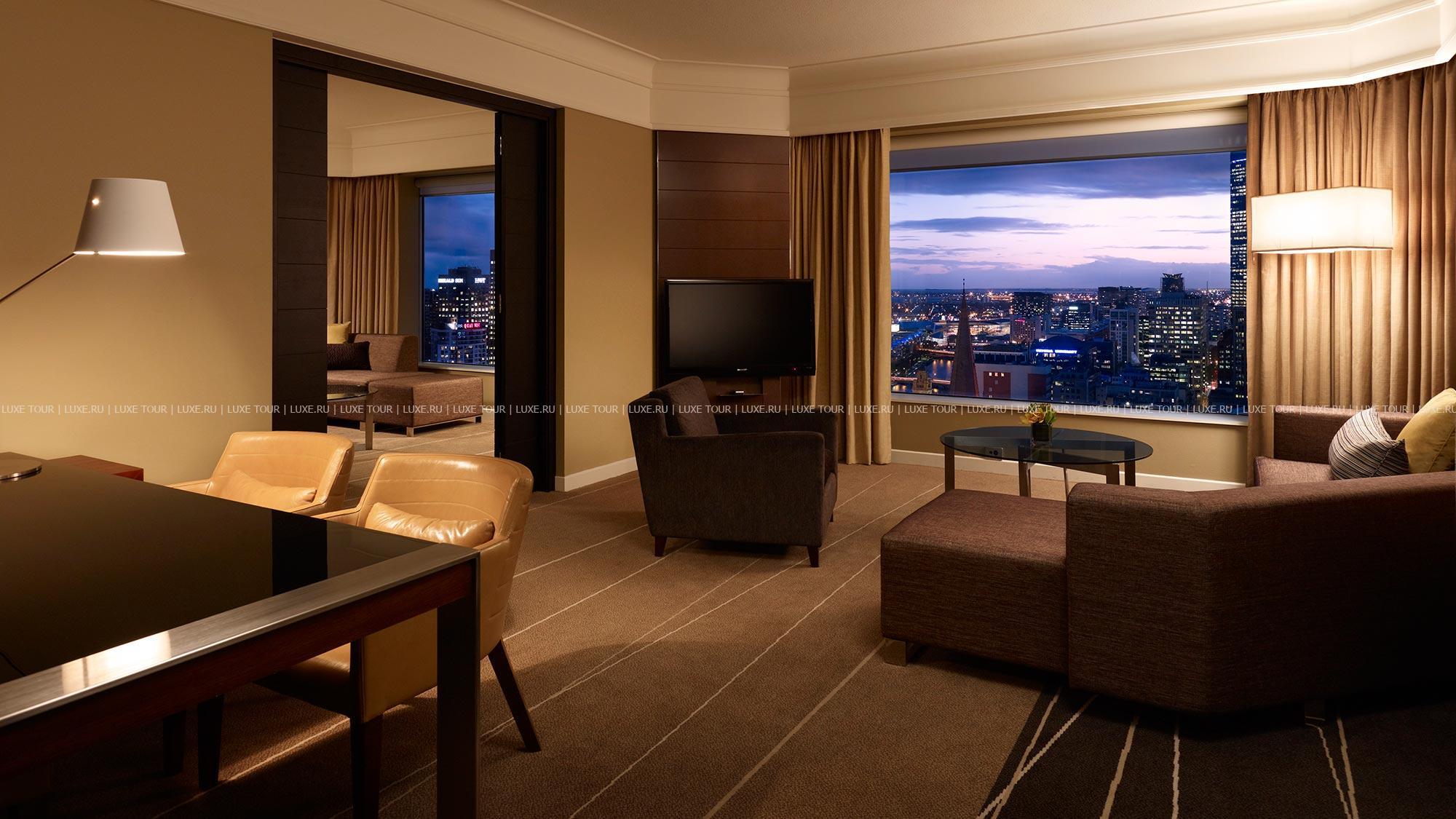 Величественный отель-небоскреб Grand Hyatt Melbourne предлагает гостям размещение в номерах разных категорий, в том числе и в президентском сьюте. Из панорамных окон во всех номерах открываются удивительные виды на город, реку Yarra и деловой центр. Интерьеры номеров оформлены под влиянием стиля Art Deco и приятно удивят гостей своей изысканностью и одновременно непринужденностью обстановки. Из номеров повышенной комфортности есть выход в гостиную Grand Club, где гости смогут позавтракать или выпить коктейль, некоторые номера оборудованы спа-ванной.