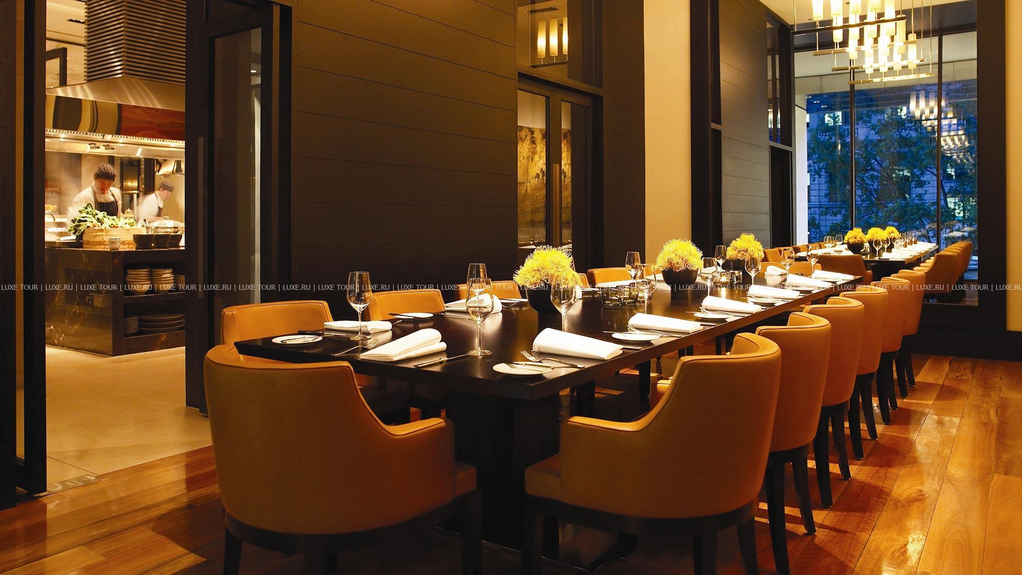 Ресторан Plane Tree Cafe расположен рядом с холлом-лобби. Из ресторана открываются виды на улицу Russell Street, засаженную платановыми деревьями.