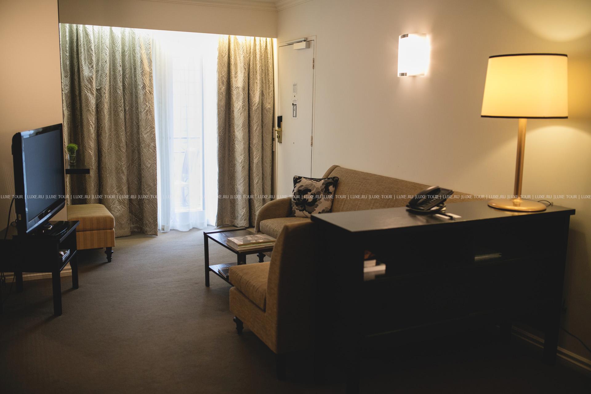 Для гостей — библиотека с камином, конференц-зал, вмещающий до 60 человек, бизнес-центр, автомобильная парковка, услуги прачечной и химчистки.