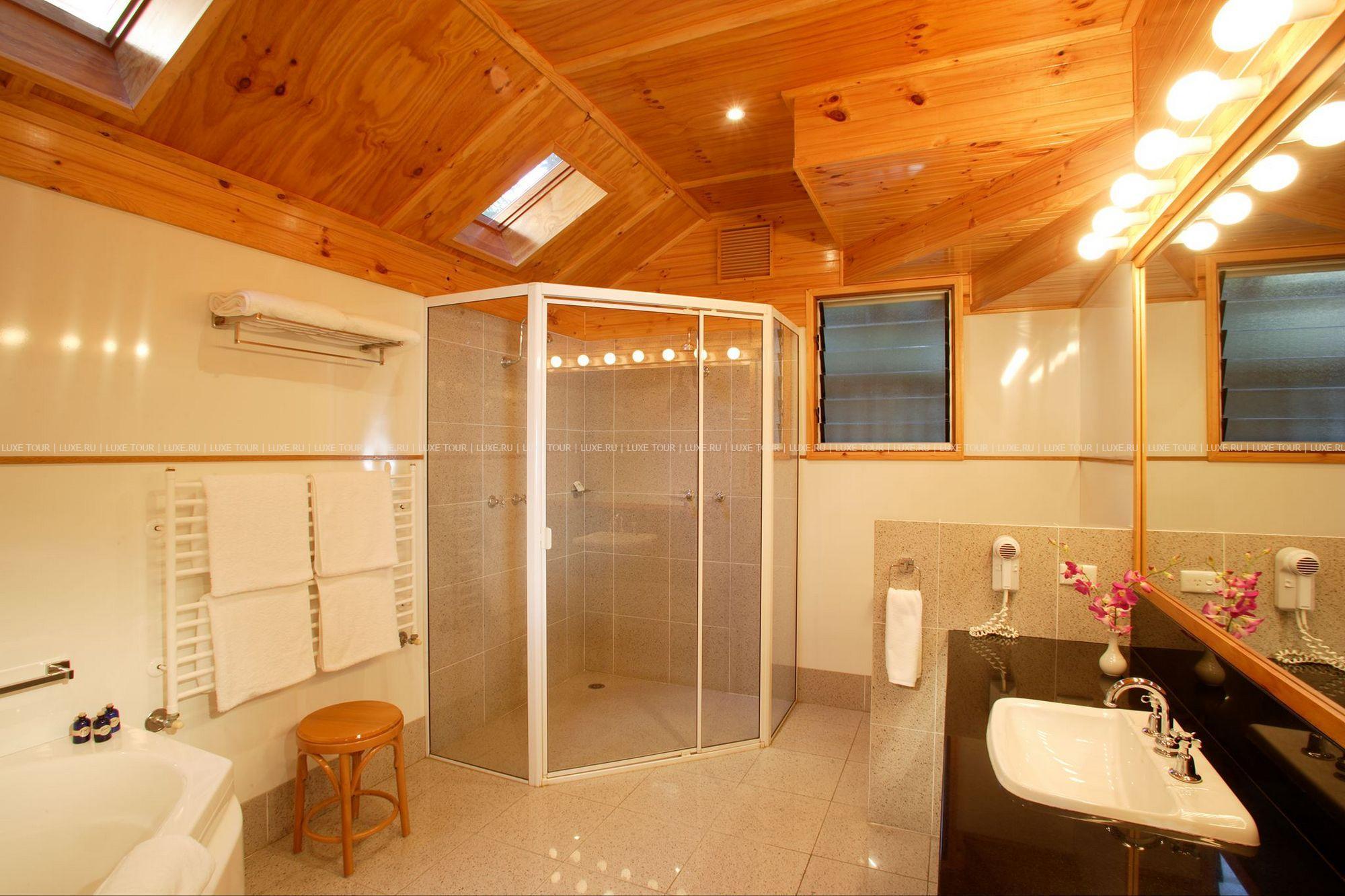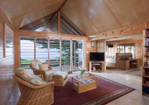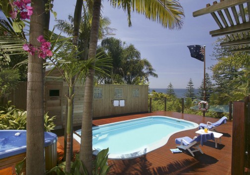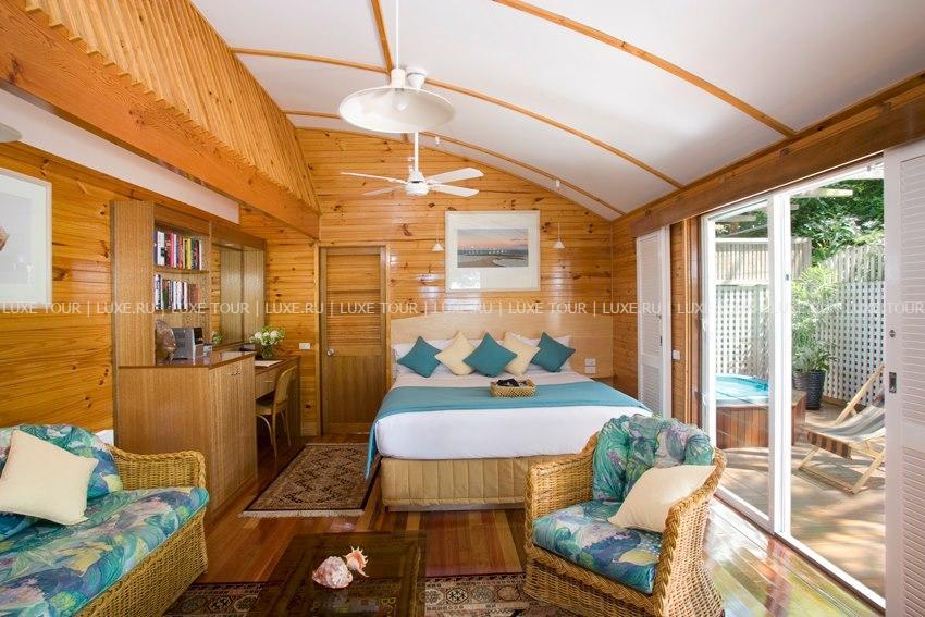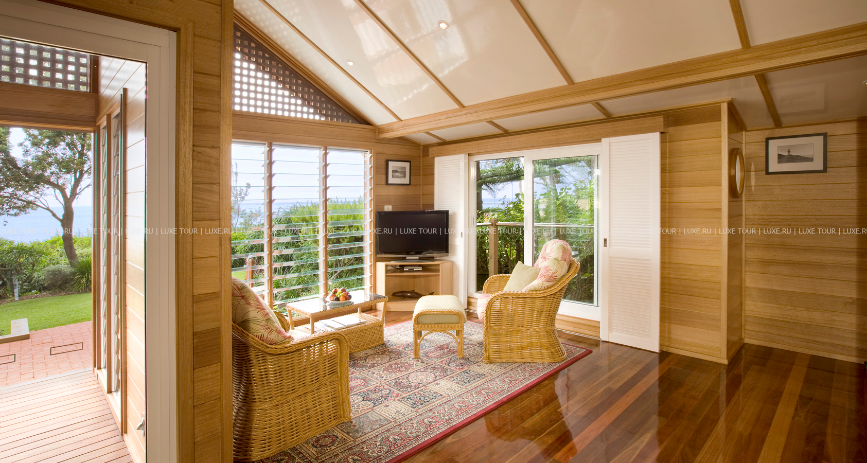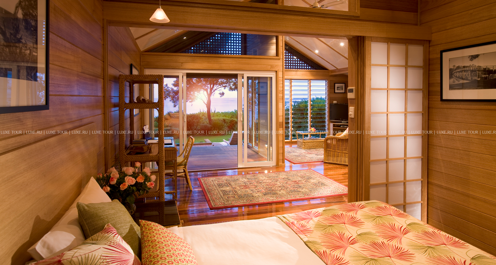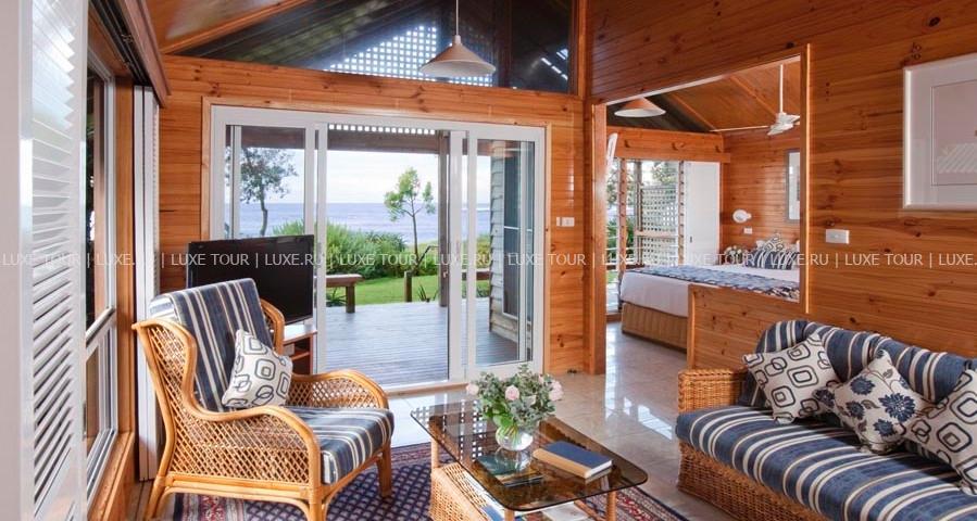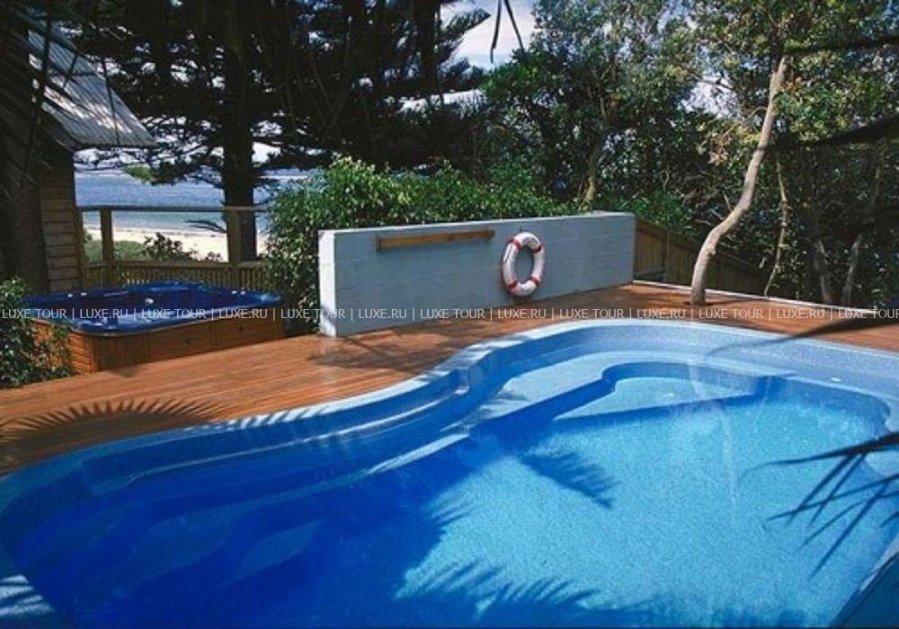 Просторные бунгало и спа-виллы расположились по береговой линии рядом с пляжем, некоторые находятся на уровне древнего Норфолкского соснового леса. Гости смогут пройти различные курсы массажа. На курорте работает ресторан, предлагающий великолепную кухню и потрясающие виды на Тихий океан. В гостиной гостям предложат коктейли и живой дивертисмент вечером.