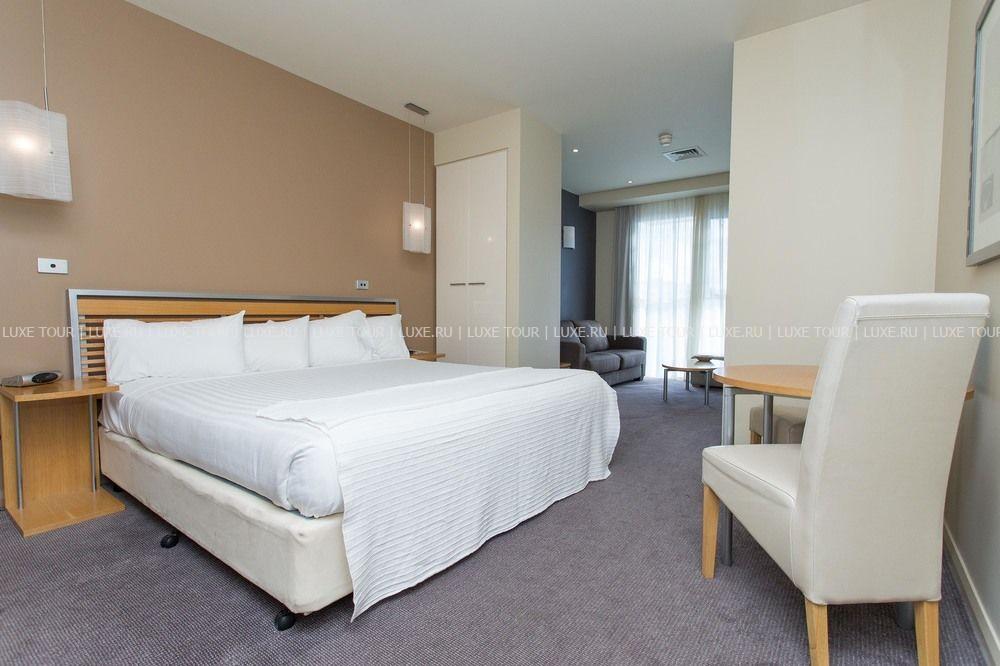 Peppers Seaport, построенный в форме корабля, расположился на месте старой верфи, в центре Лонсестона, окруженный многочисленными кафе, ресторанами и барами Старого Порта. В комфортабельных номерах - стильные современные интерьеры, выдержанные в светлых тонах, с большими окнами, ковровым покрытием, удобной мебелью, оригинальными светильниками, изысканной живописью на стенах, во многих номерах имеются балконы с видом на исторический центр города, залив, реки Esk и Tamar.