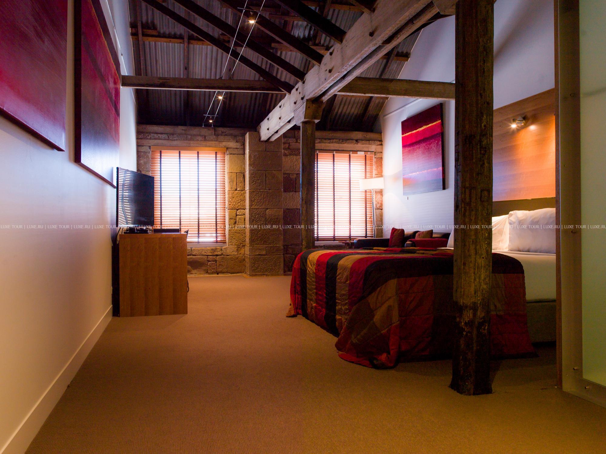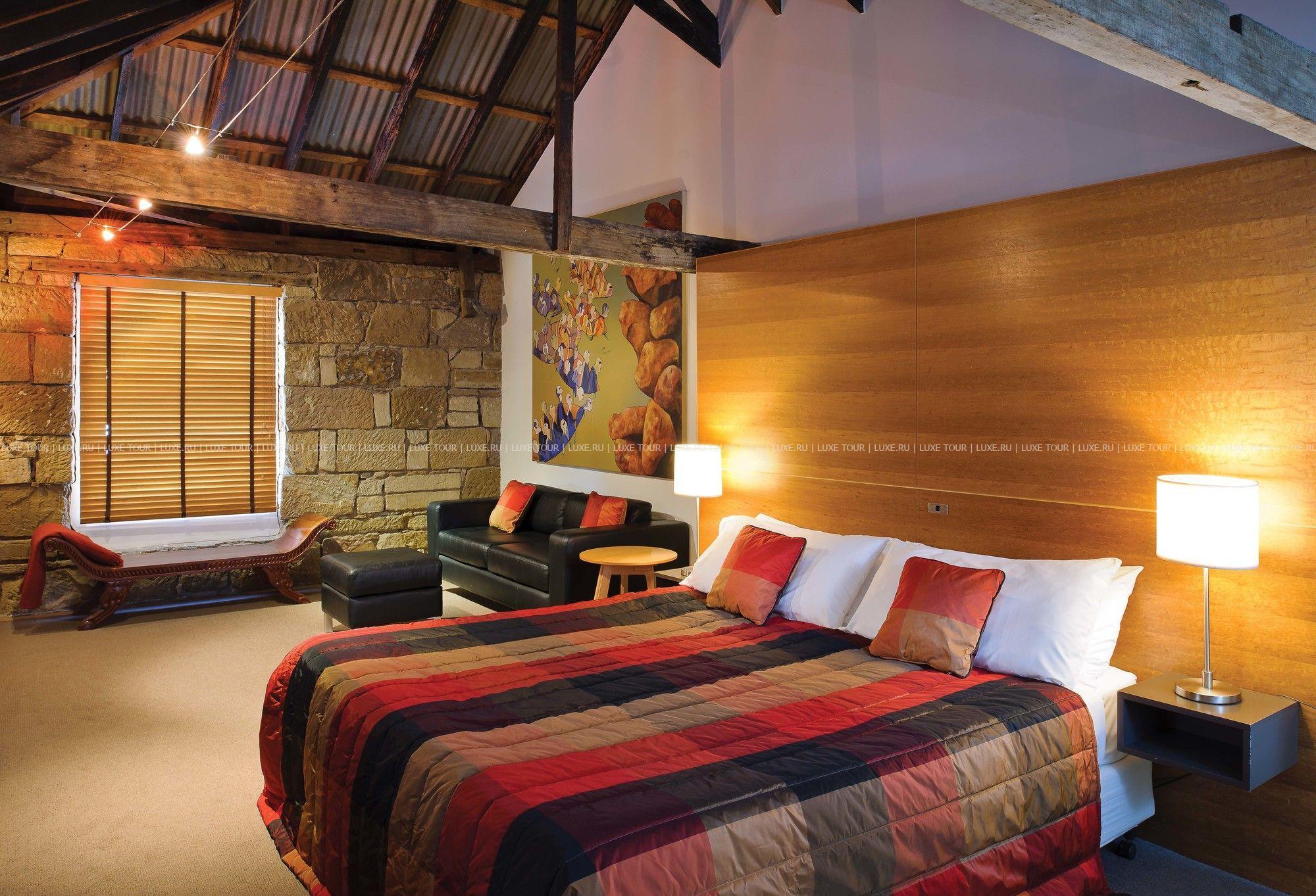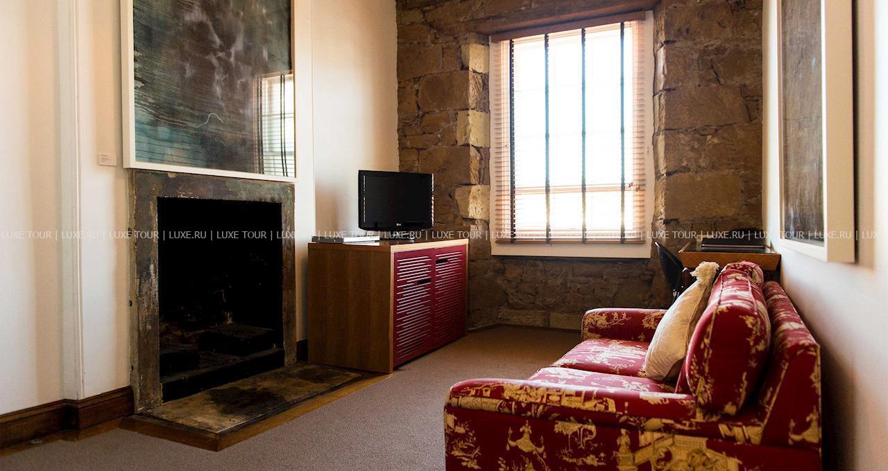 Интерьеры всех помещений отеля сочетают фрагменты эпохи прошлых веков и работы авангардных художников: старинные кирпичные стены, деревянные балки, антикварная мебель гармонично объединены с 250 произведениями современных тасманских авторов (которые гости отеля могут приобрести) и модными художественными направлениями. Каждый номер имеет индивидуальное оформление, отражая историю развития острова, ведшего оживленную торговлю со многими странами – здесь и китайский стиль, и индийские мотивы, и японские интерьеры.