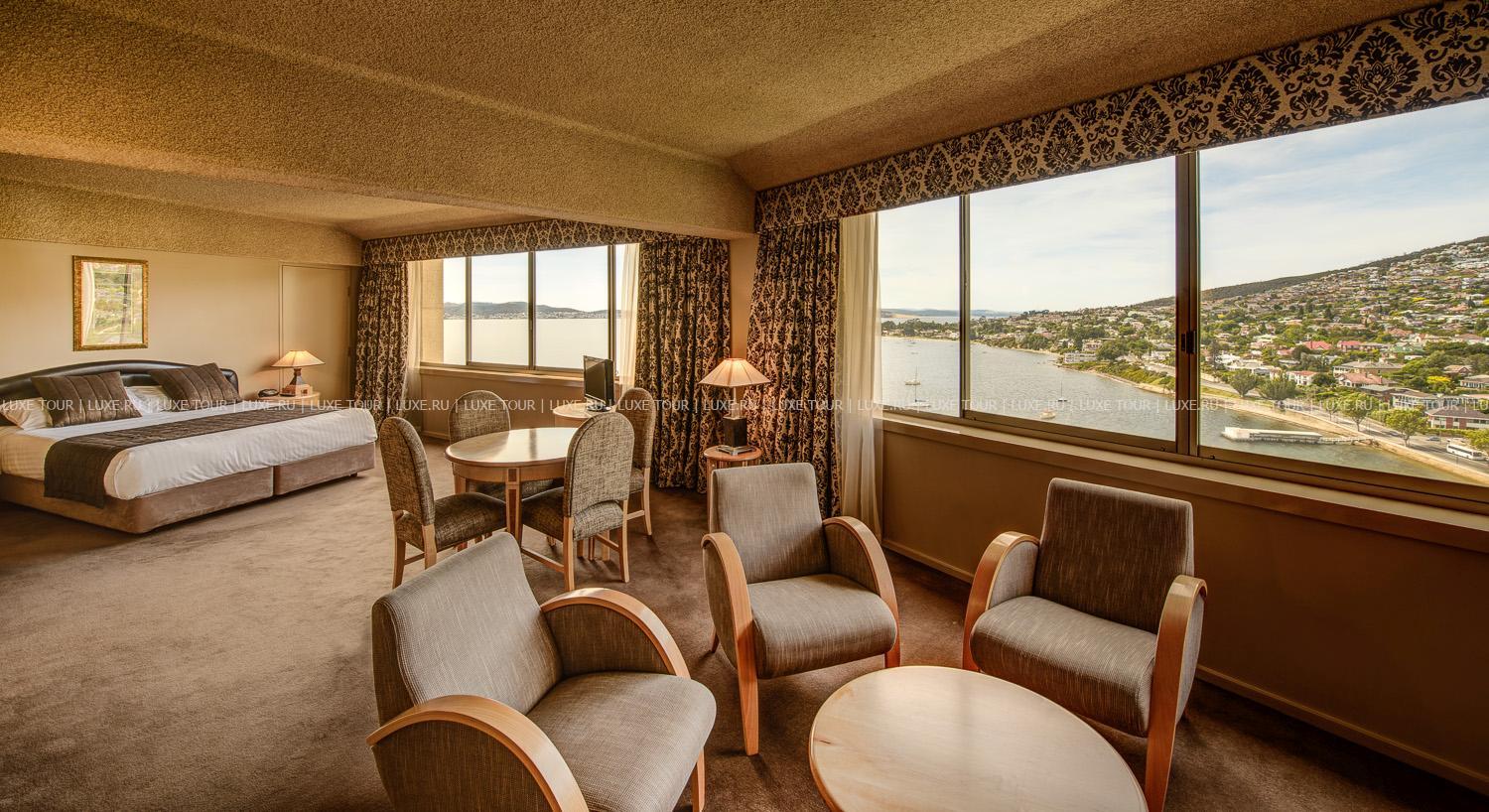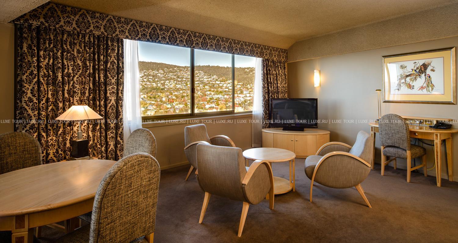 Wrest Point, расположенный в центре Хобарта, в устье реки Derwent, является современным гостиничным комплексом, сочетающим комфорт и многообразие услуг. Элегантные уютные номера, оборудованные по последнему слову техники, представлены различными категориями и местоположением. Во всех номерах – стильные интерьеры с удобной мебелью, мягким освещением, панорамными окнами, из которых открывается живописный вид на реку, горы или город. 4 ресторана и 5 баров отеля предлагают разнообразие блюд и напитков на любой вкус.