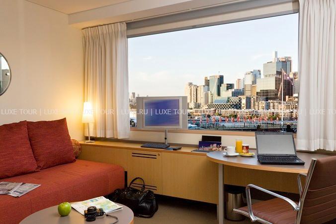 Белоснежное современное здание Novotel Darling Harbour расположилось на берегу залива, в центре оживленного района Darling Harbour, рядом с Австралийским Национальным Музеем Моря, сиднейским Аквариумом, торговым центром Harbourside. В комфортабельных номерах – современные элегантные интерьеры в светлых тонах, с яркими цветовыми акцентами, ковровым покрытием, большими окнами, удобной мебелью, изысканными эстампами на стенах. Стильный и комфортабельный Novotel Darling Harbour прекрасно подходит для отдыха, бизнеса и знакомства с Сиднеем.